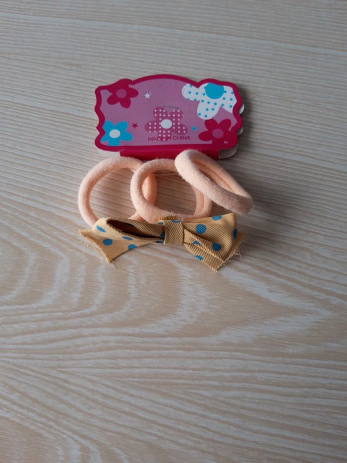 Lot de 3 elastique abricot dont 1 avec nœud jaune a pois bleu #familly86accessoires