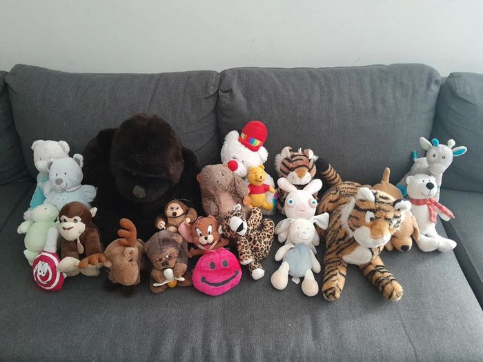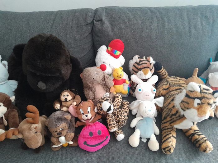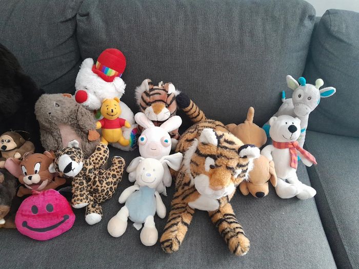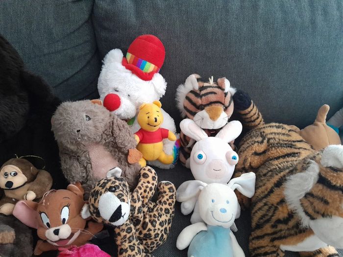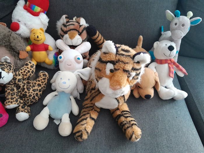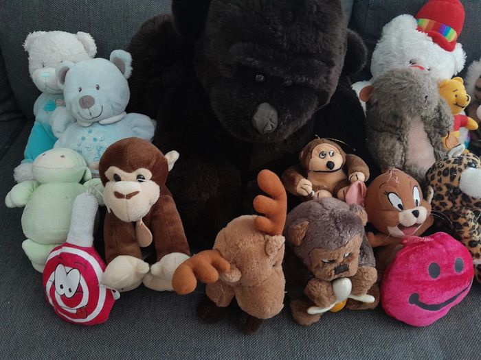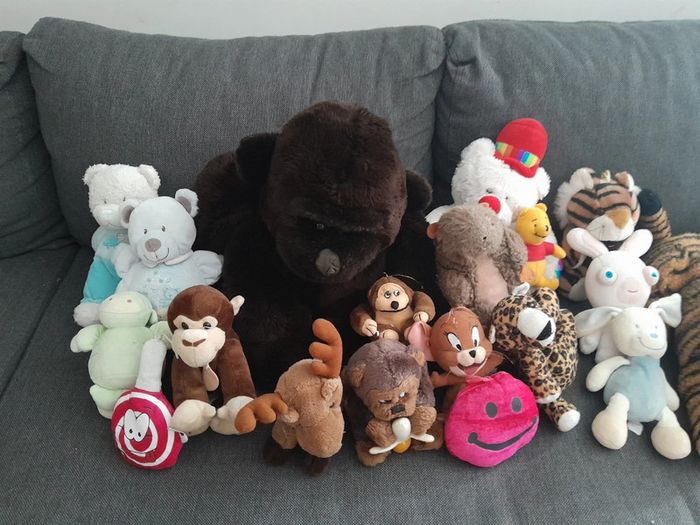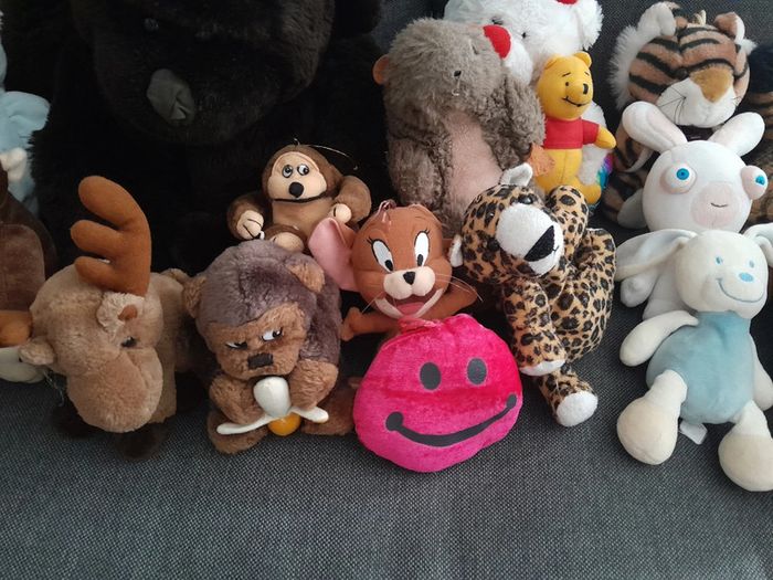 Lot de 23 peluches 15euros le lot Je donne une peluche en plus un serpent à recoudre au niveau de la bouche voir derrières photo