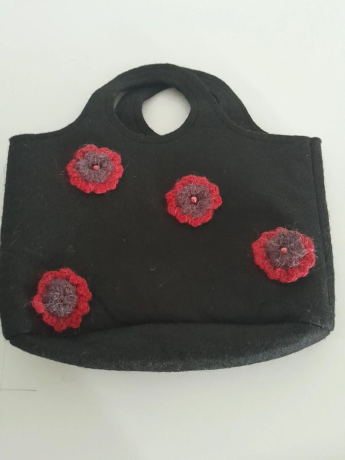 Sac en feutrine noir et fleur rouge et violette - photo numéro 1