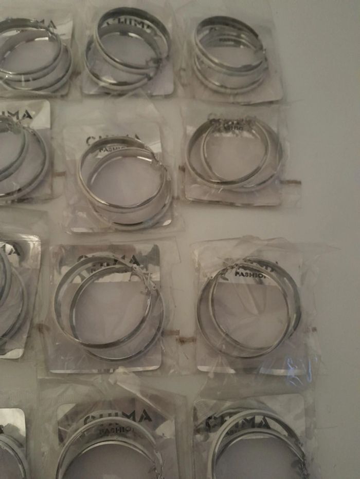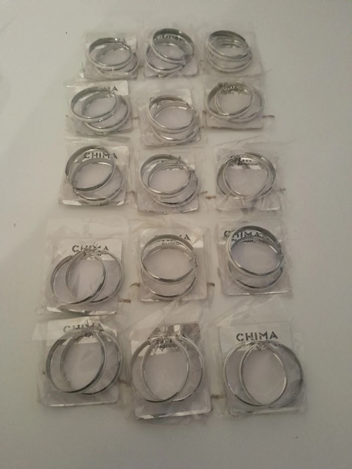 Lot de 17paires de créoles argenté et blanche Jamais porté. Dimensions sur les photos 17euros le lot