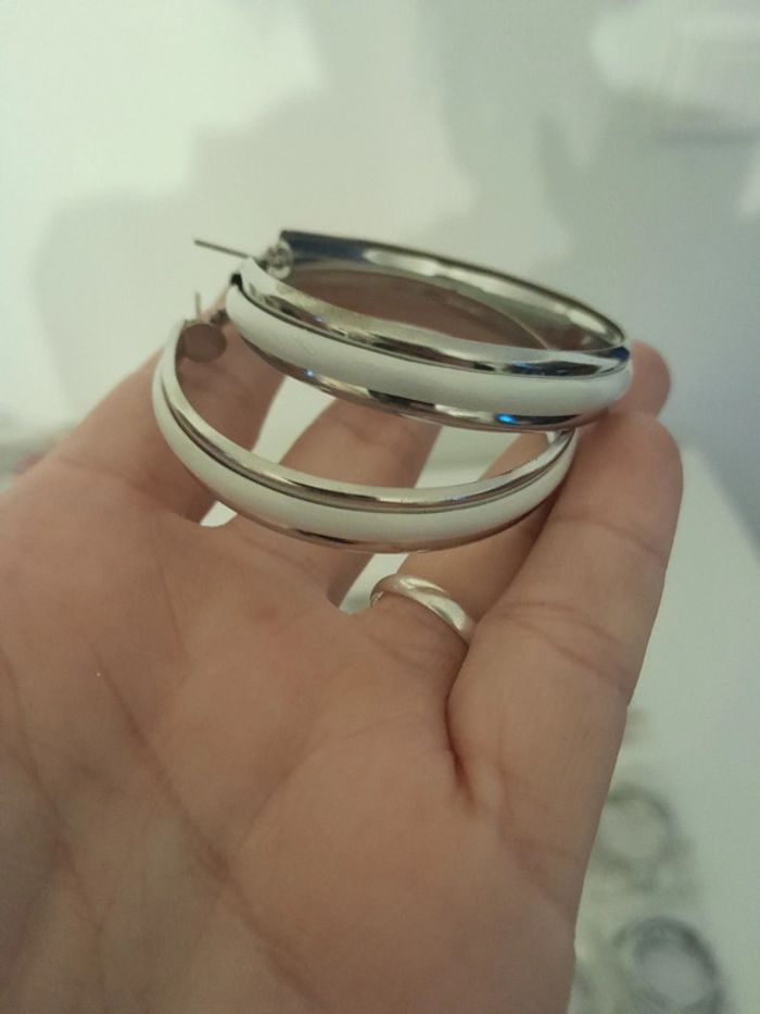 Lot de 17paires de créoles argenté et blanche - photo numéro 10