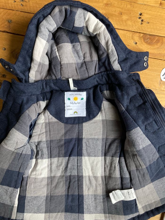 Réduction en lot Manteau hiver - Marque(s) : orchestra - Taille(s) indiquée(s) : 12 mois 74 cm - doublé, rembourré - capuche amovible - bon état : aucune tâche ni trou. peluches sur le tissu. couche supérieur faux cuir craquelé mais le lien tient toujours (dernière photo)