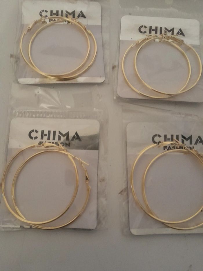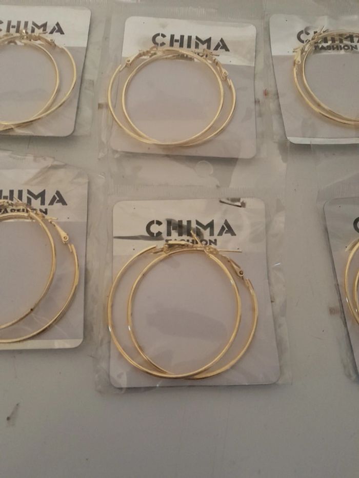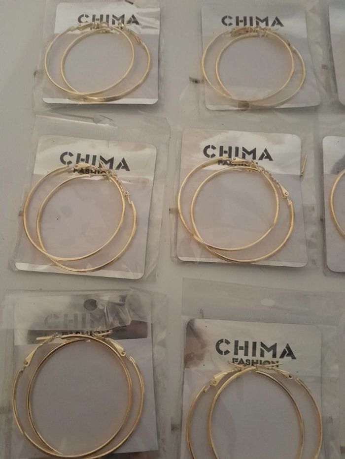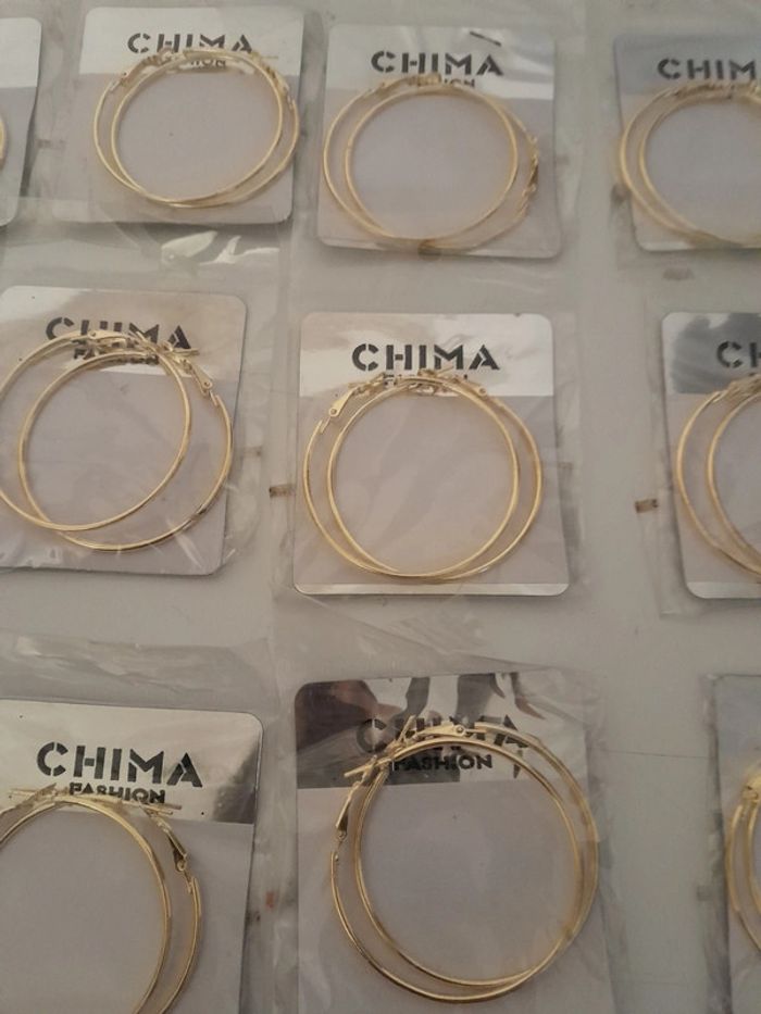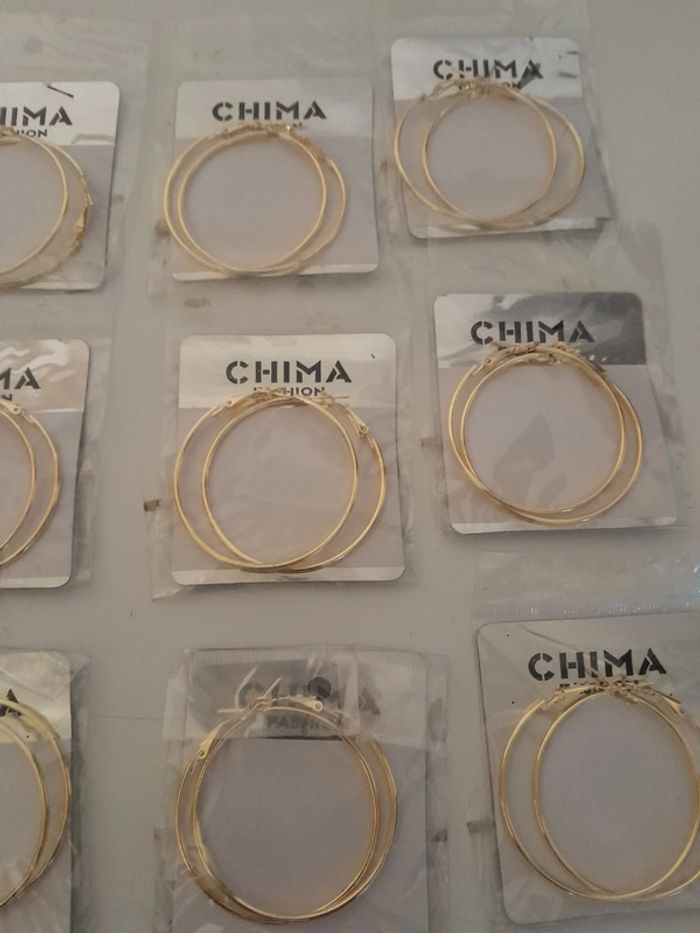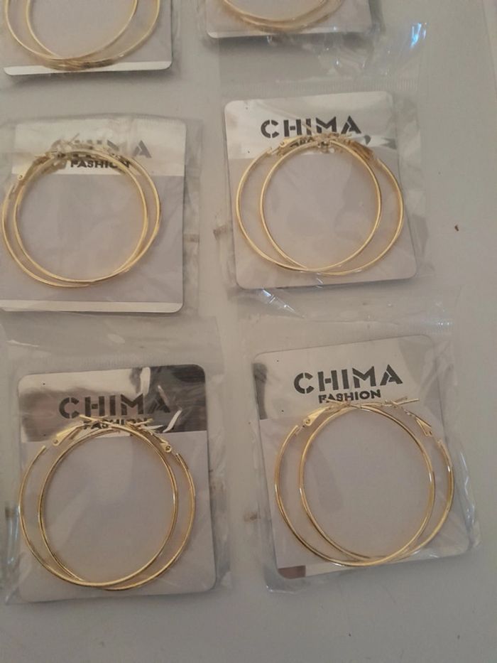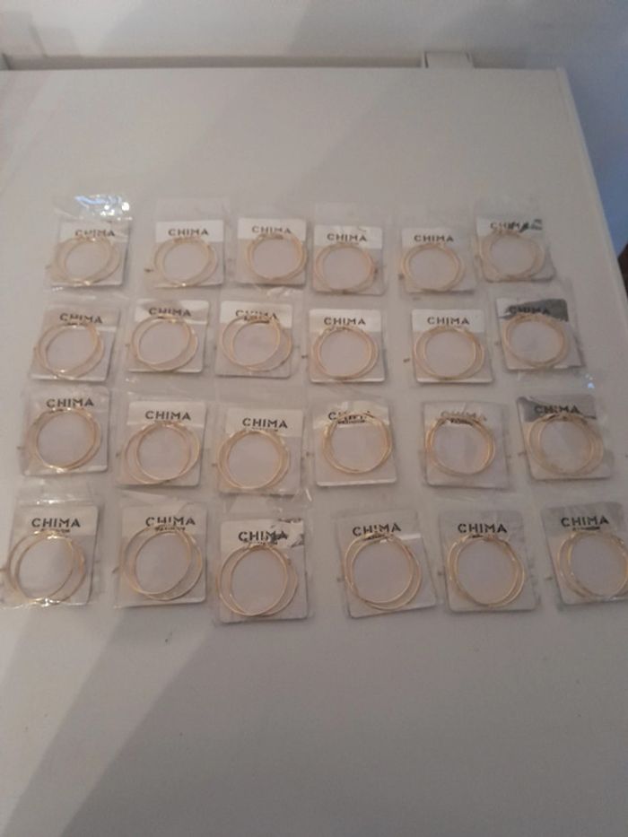 Lot de 24 créoles doré Jamais utilisé encore sous blister Dimensions sur la dernière photo 24euros le lot