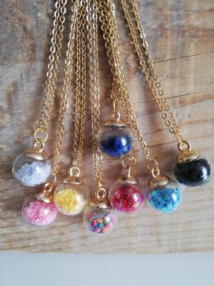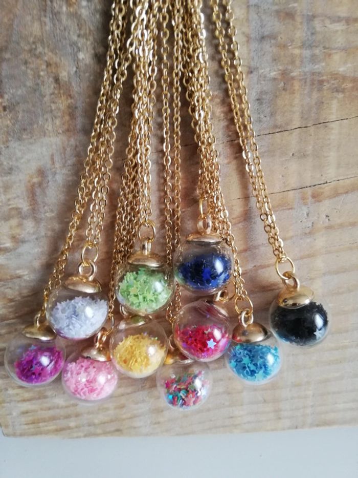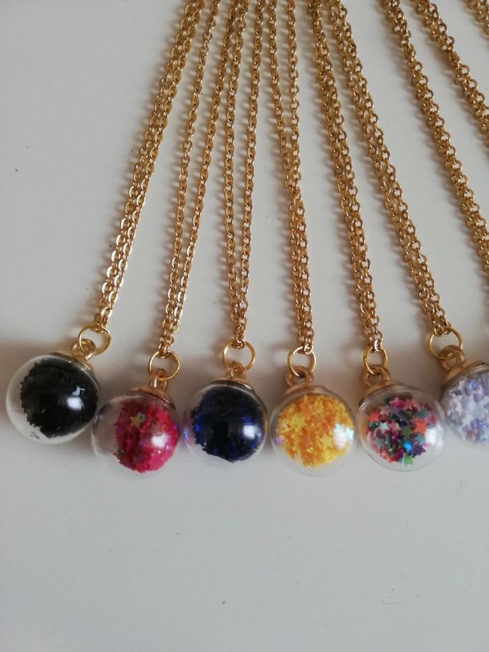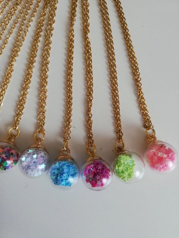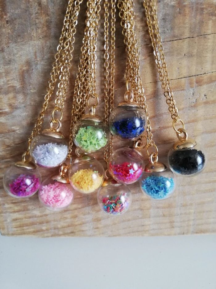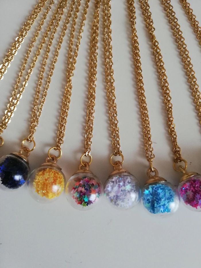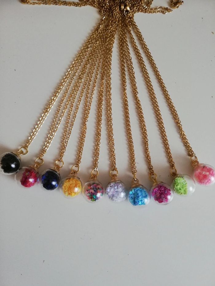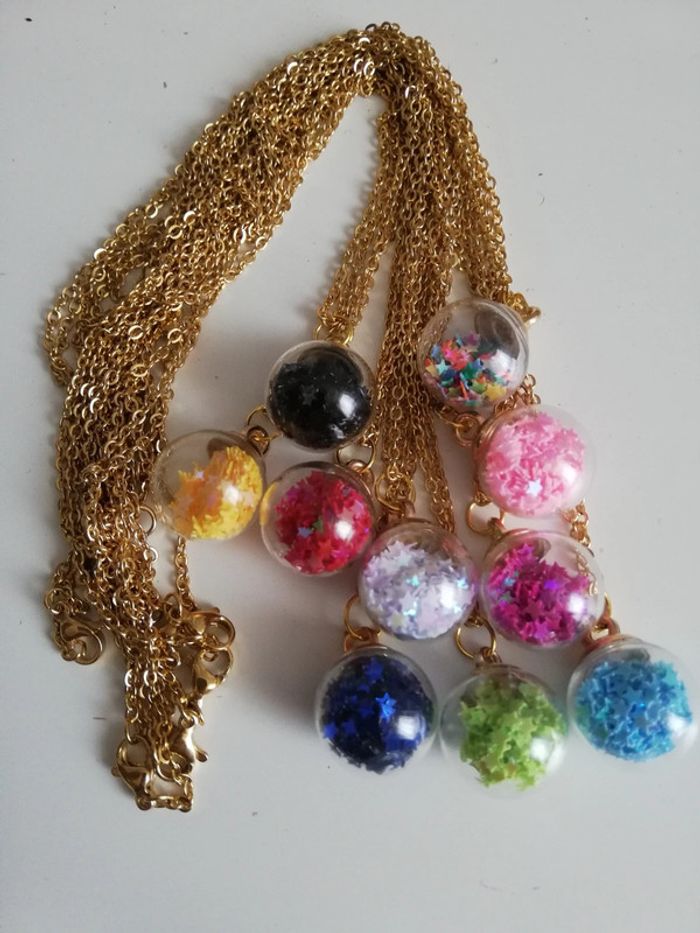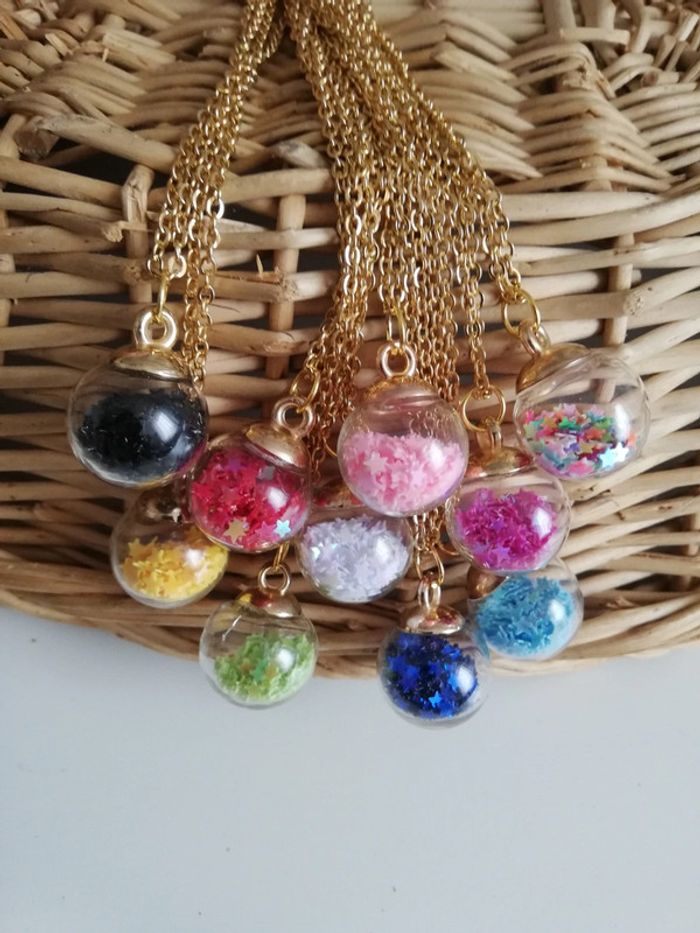 Lot de 10 colliers de Noël boules en verre et paillettes étoiles. Chaînes en acier inoxydable. 30euros le lot