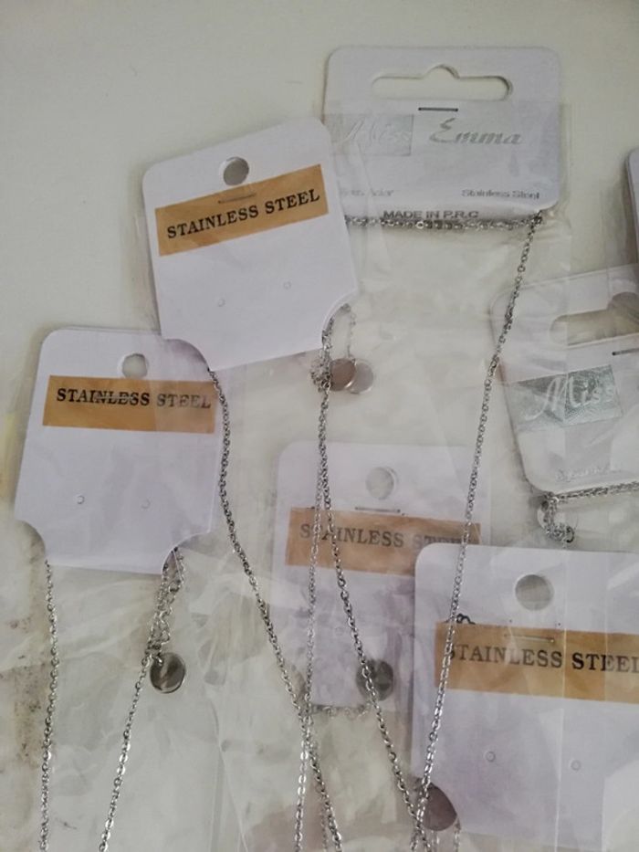 Lot de 10 colliers en acier inoxydable Lot numéro 2 30euros le lot Sous blister