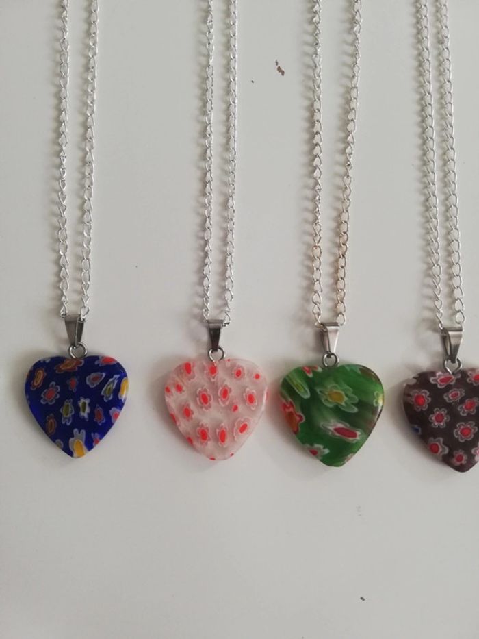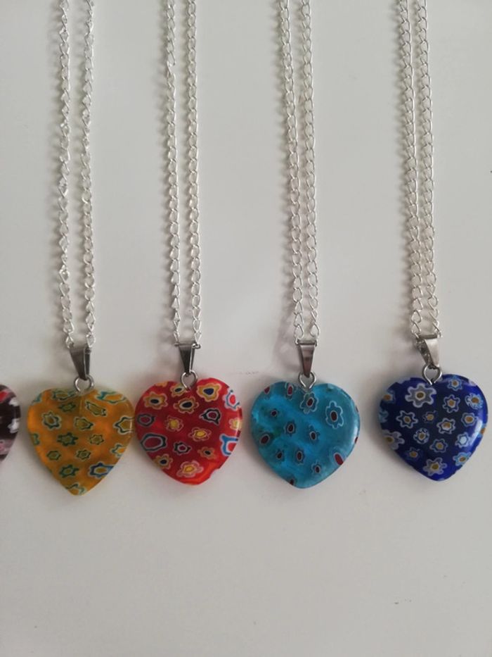 Lot de 10 colliers cœur en verre millfleuri et chaîne en métal argenté sans Nikel. Love St Valentin 20euros le lot.