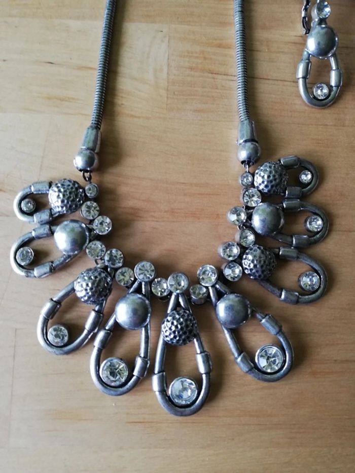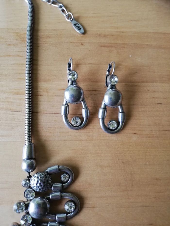Parure collier et boucles d'oreilles argenté et strass - photo numéro 1