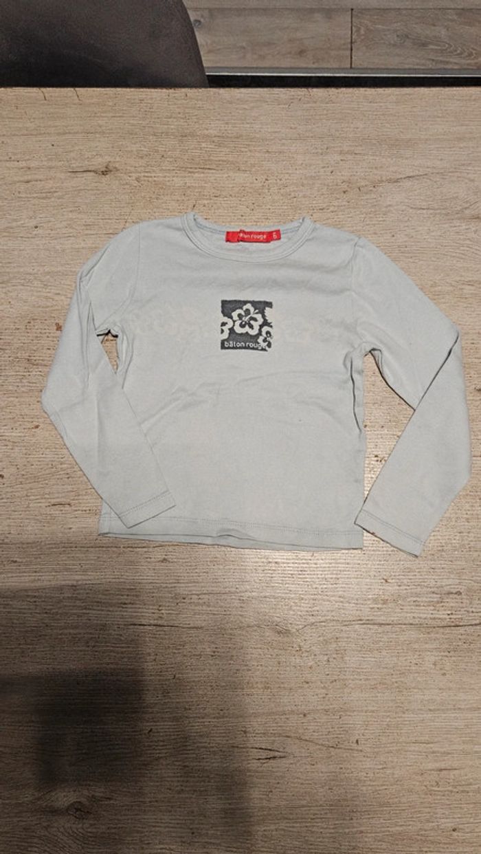 T shirt à manches longues bleu avec dessin gris. Pas beaucoup mis. Col ronf. Elastique. Convient pour du 5 à 6 ans #deborahtock_6ans