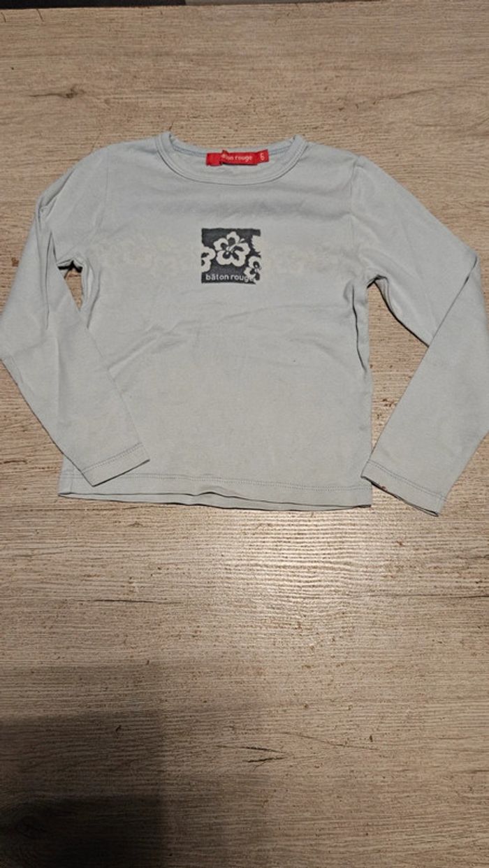 T shirt bleu gris à manches longues, Baton rouge, 6 ans - photo numéro 1