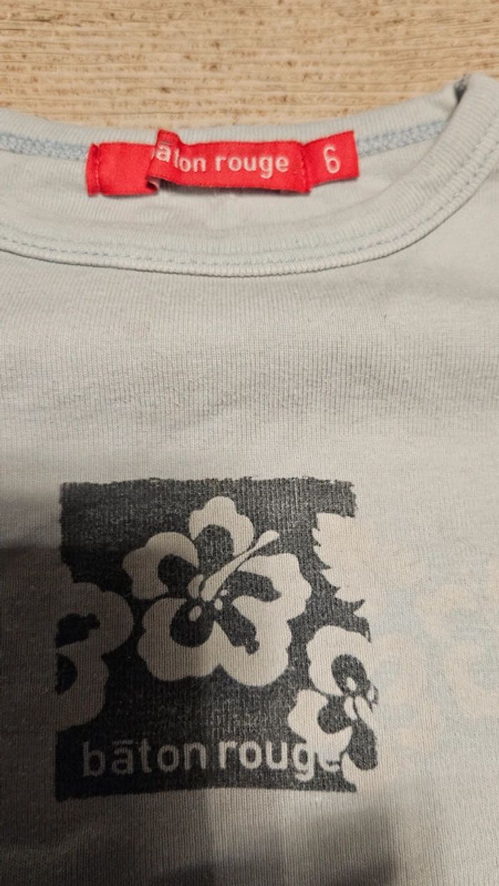 T shirt bleu gris à manches longues, Baton rouge, 6 ans
