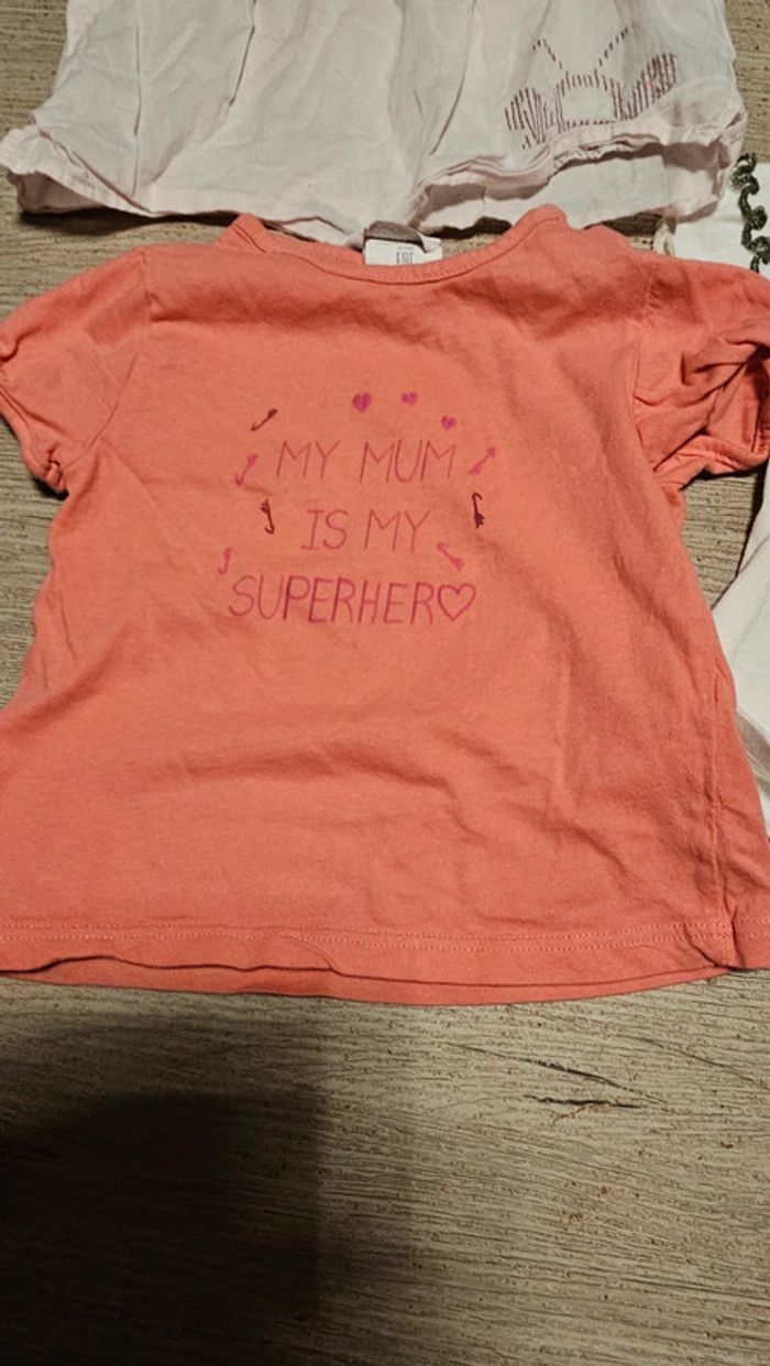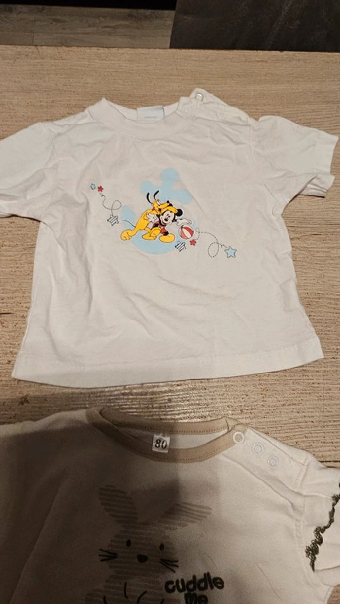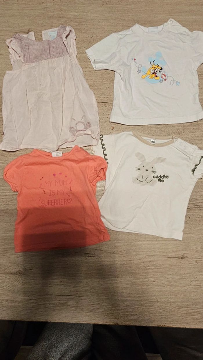 Lot composé de 4 t shirt 1 rose Kiabi, nickel 1 blanc avec 1 lapin,bon état 1 blouse rose clair Obaïbi, lègère, peu mise 1 t shirt blanc Disney #deborahtok_12mois