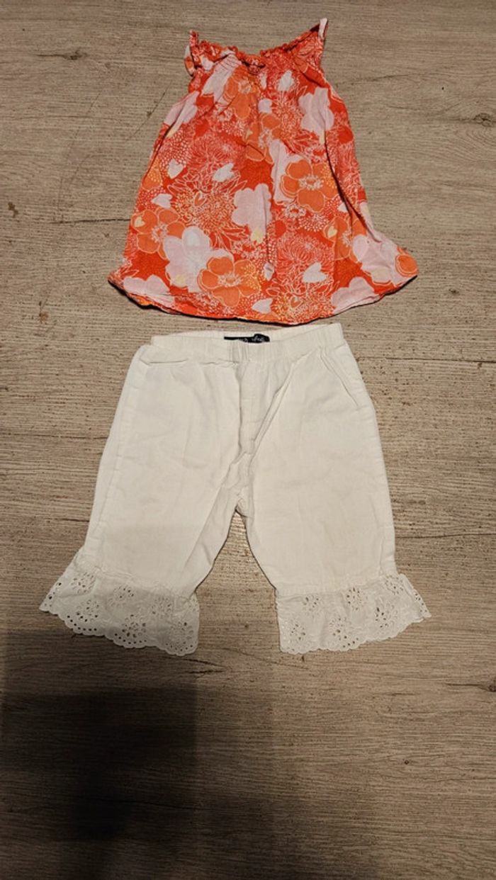Ensemble pantalon blanc Lili Gaufrette, et blouse, 12 mois, peu mis - photo numéro 1