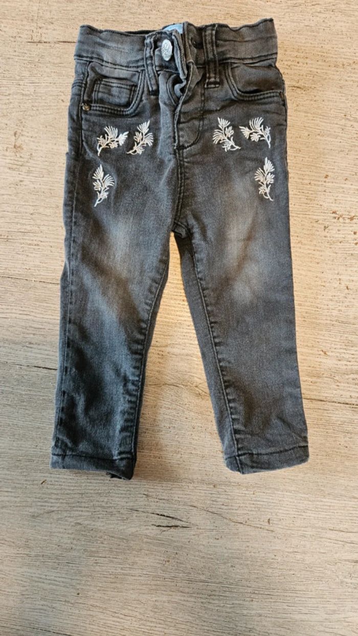 Jean s gris très foncé avec dessin dans le haut, TQF, 12 mois, peu mis - photo numéro 1