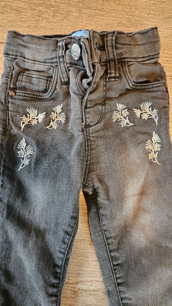 Jean s gris très foncé avec dessin dans le haut, TQF, 12 mois, peu mis - photo numéro 3
