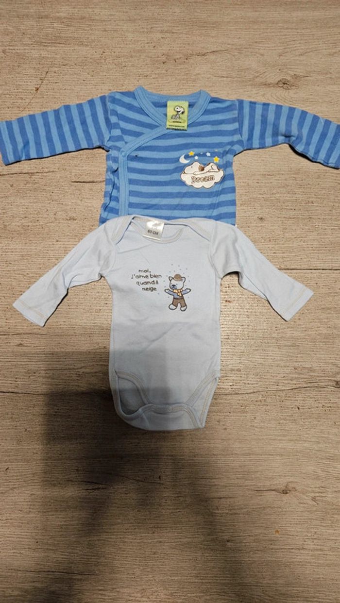 1 bodie Snoopy en excellent état et 1 autre bleu plus clair, peu mis #debirahtock_3mois
