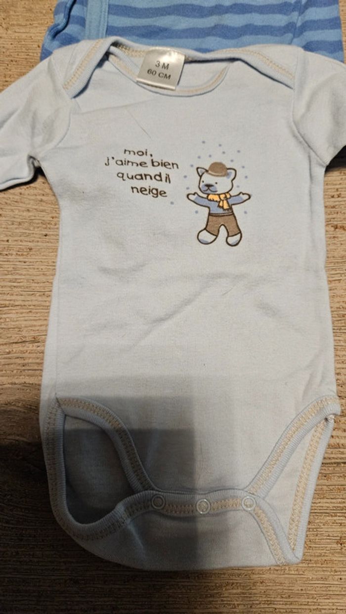 Lot de 2 bodies à manches longues, bleus Snoopy, bon état, 3 mois - photo numéro 5