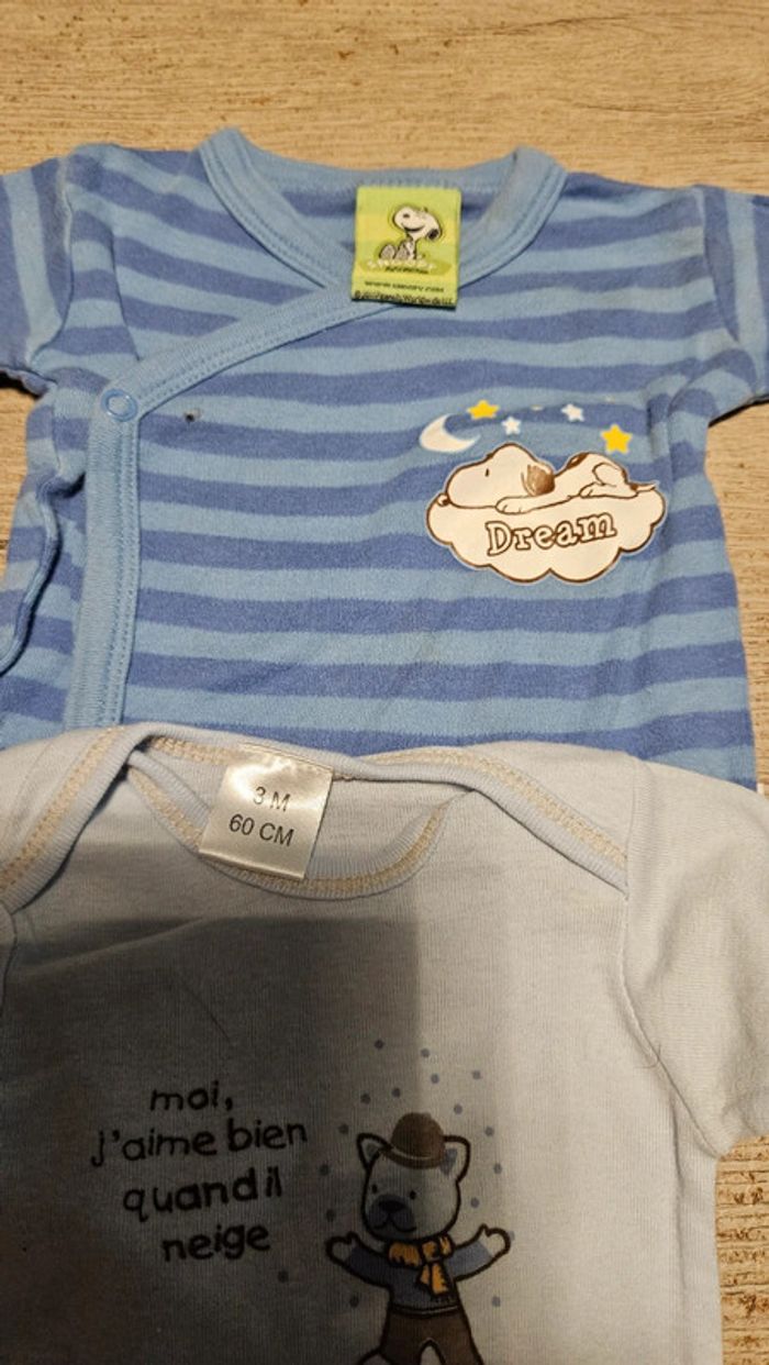 Lot de 2 bodies à manches longues, bleus Snoopy, bon état, 3 mois - photo numéro 4