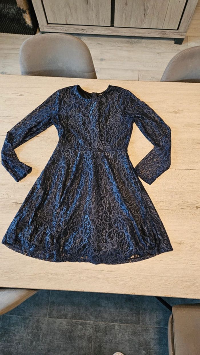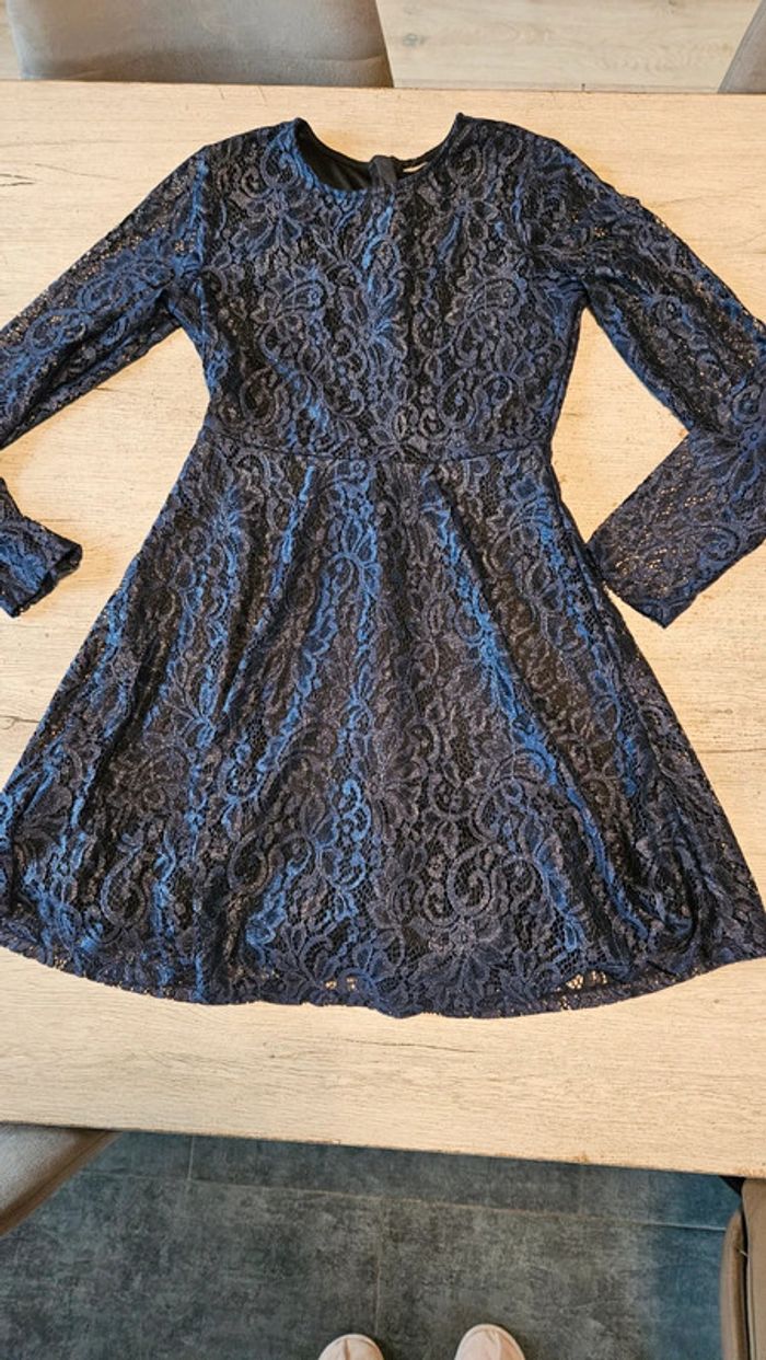Jolie robe de fête en dentelle bleu foncé, à manches longues, taille XS/S - photo numéro 1