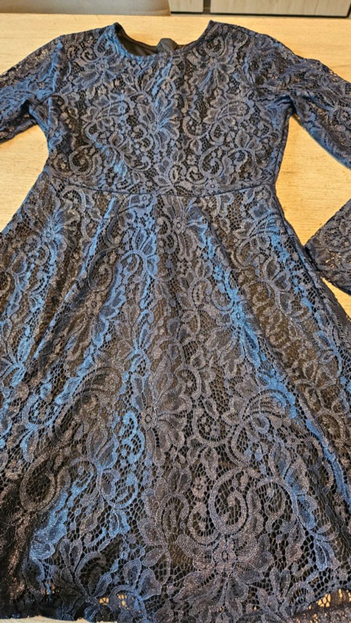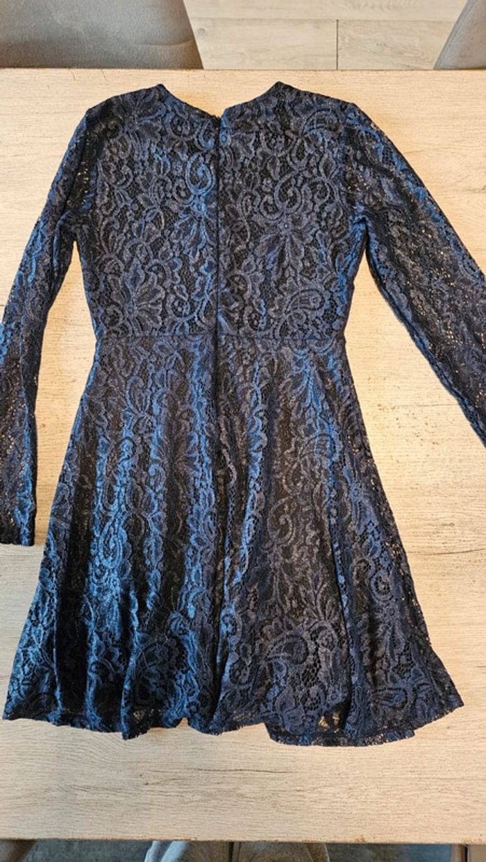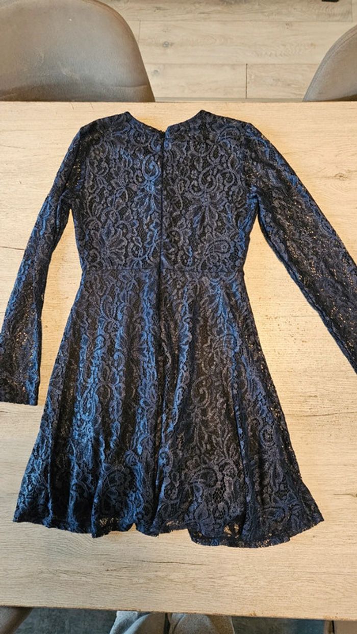 Jolie robe de fête en dentelle bleu foncé, à manches longues, taille XS/S - photo numéro 2