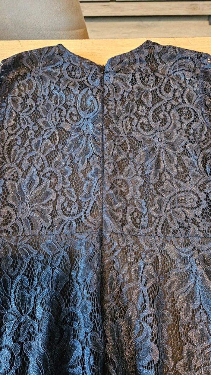 Jolie robe de fête en dentelle bleu foncé, à manches longues, taille XS/S - photo numéro 13
