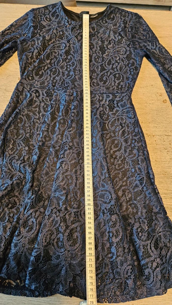Jolie robe de fête en dentelle bleu foncé, à manches longues, taille XS/S - photo numéro 15