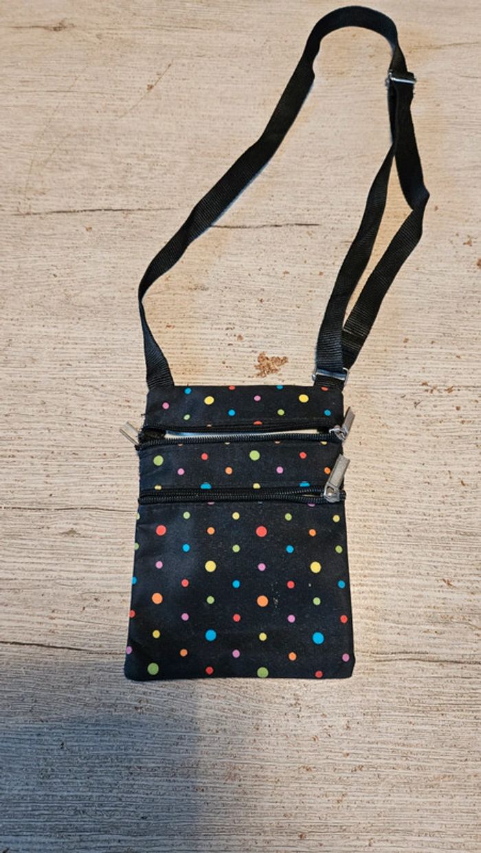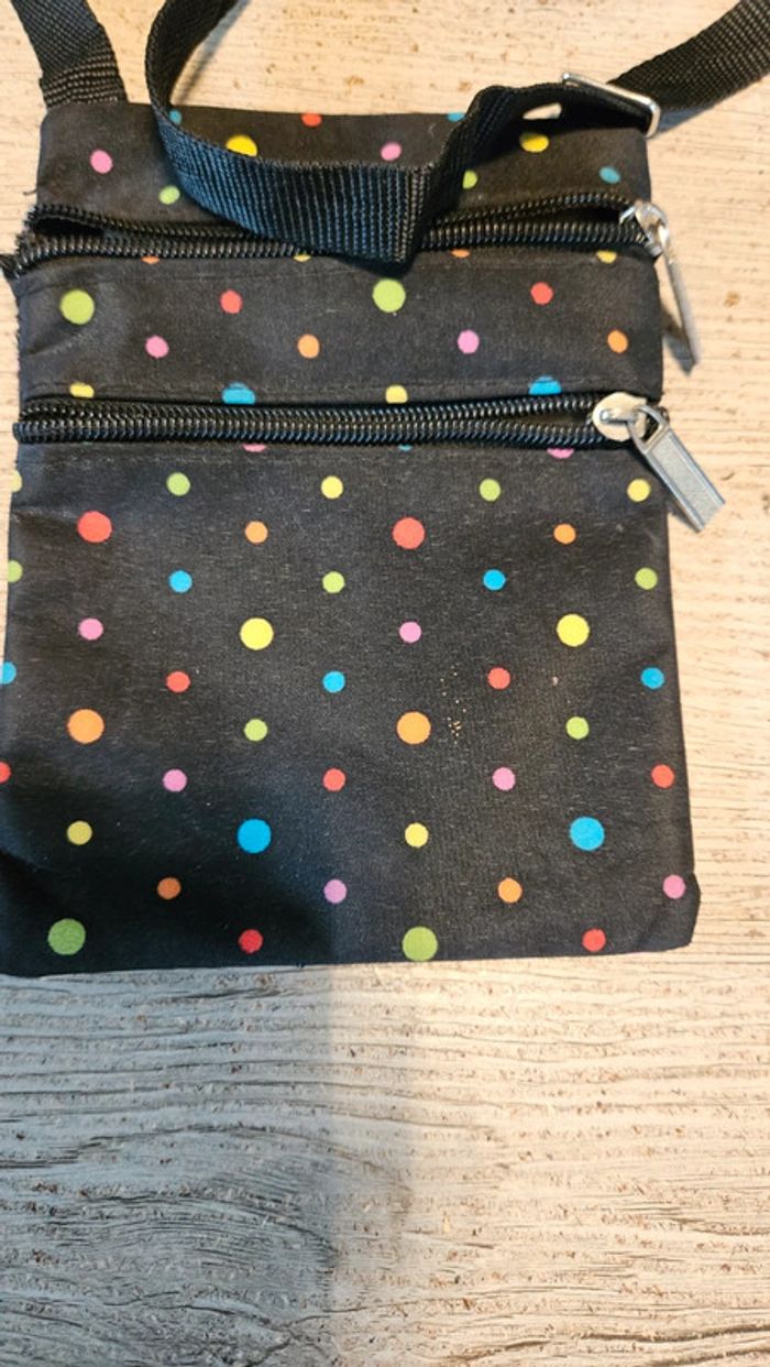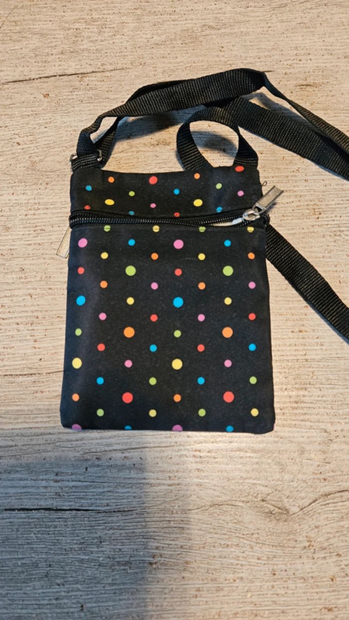 Petit sac à bandoullière noir à points, peu utilisé - photo numéro 1