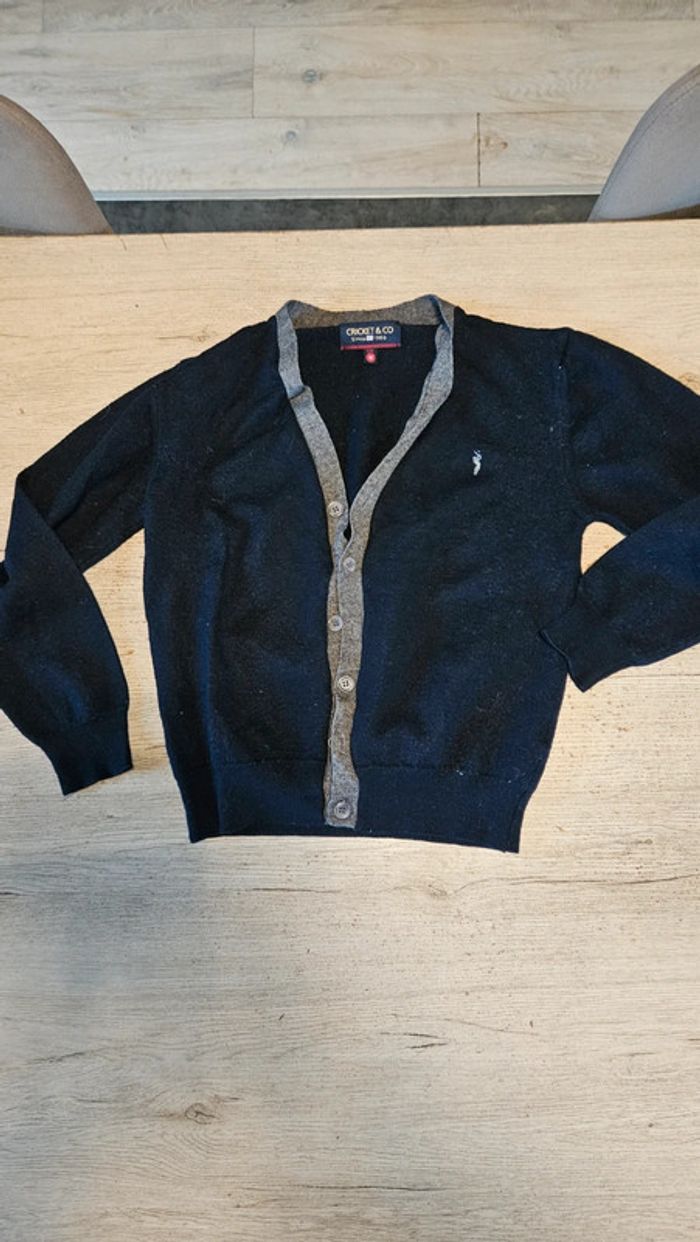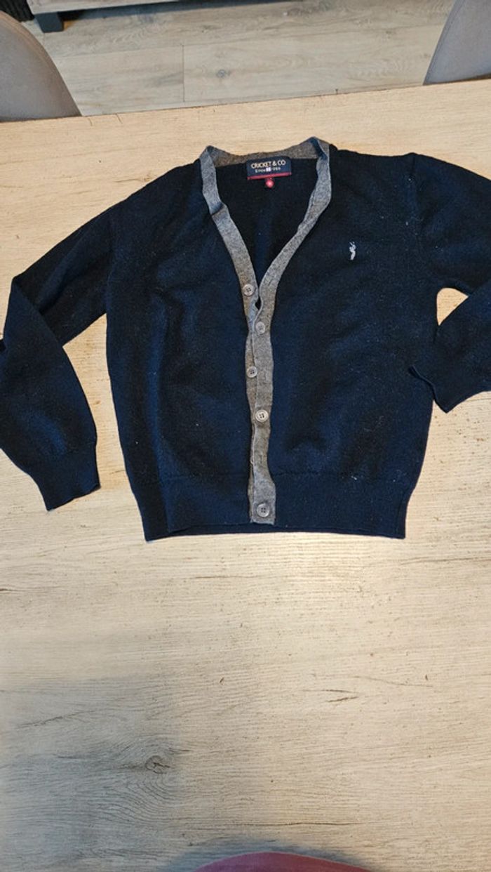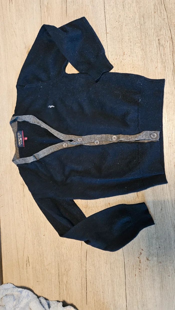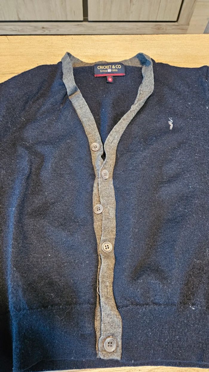 Gilet bleu foncé à bord gris, Cricket & co, en laine  taille M (10/12ans), peu mis - photo numéro 1