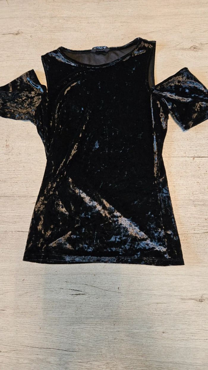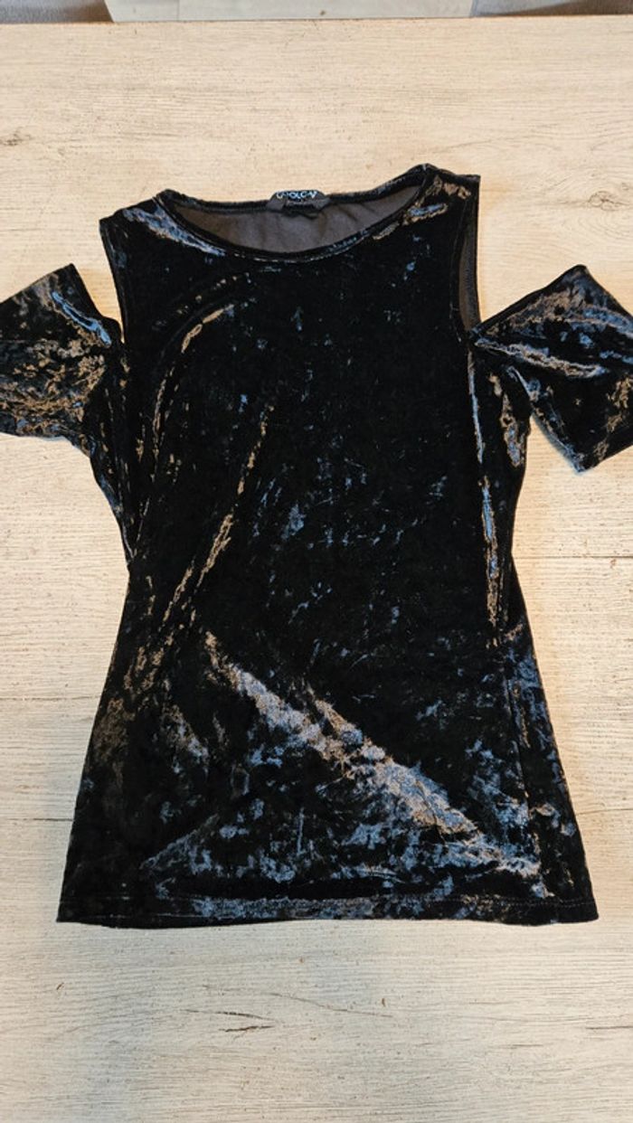 Jolie blouse satinée noir, élastique. Ma fille ne l a mise que pour une partie de soirée. Convient pour du 14 à 16 ans ou du XS. Col rond #deborahtock_14ans #deborahtock_16ans #debirahtock_femmeXS