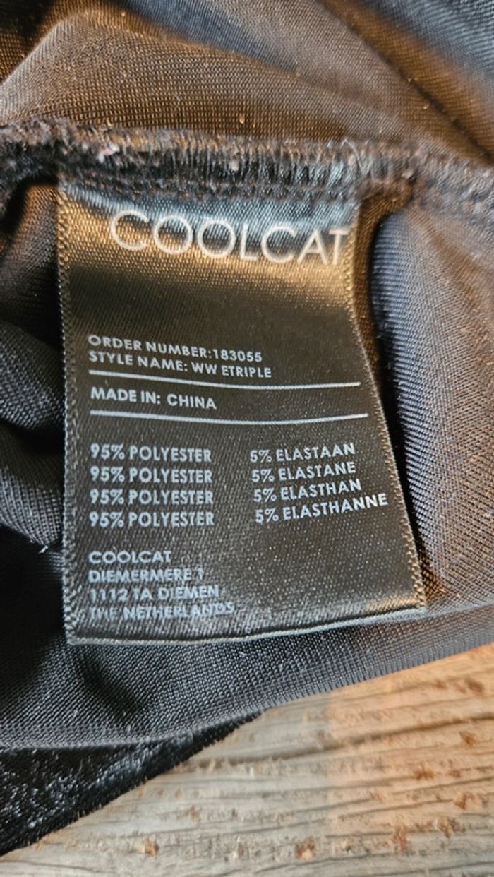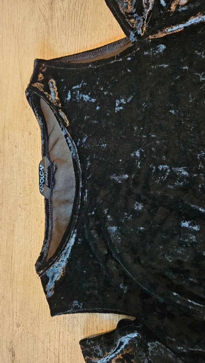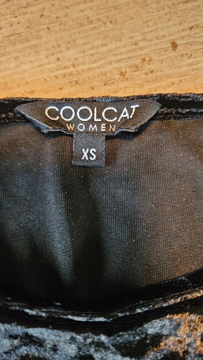 T shirt satiné noir, à manches fendues, CoolCat, taille XS, nickel