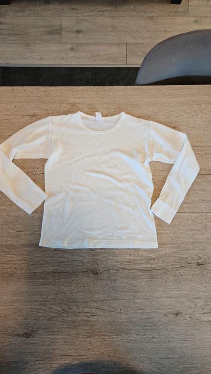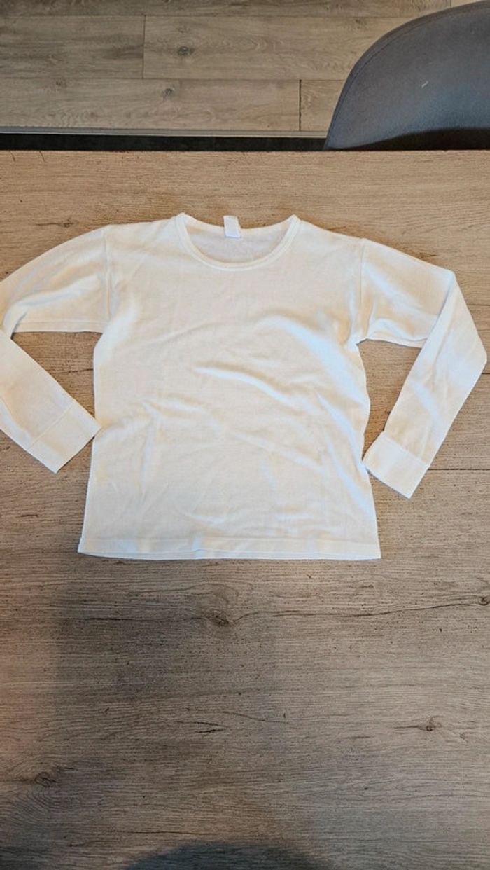 T shirt thermique blanc cassé raz de cou. Il a été mis quelques fois pour le ski. agréable à porter. Convient bien pour du 10 à 12 ans #deborahtock_ski #deborahtock_10ans #deborahtock_12ans