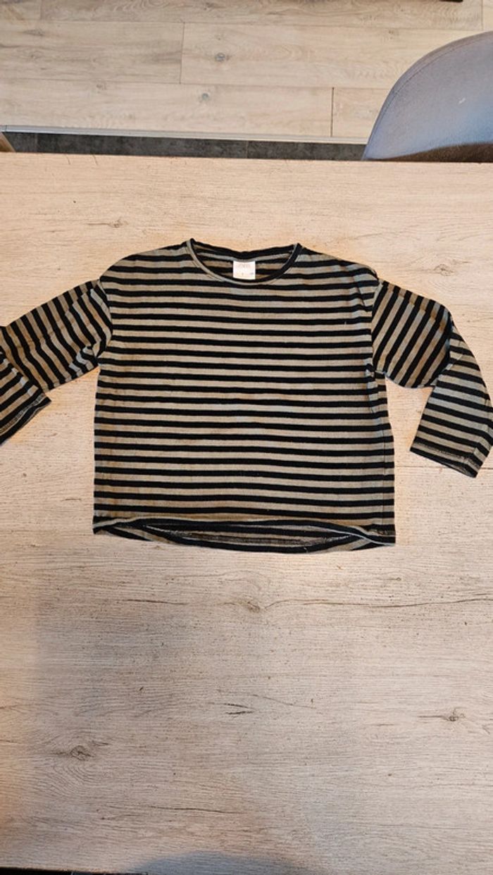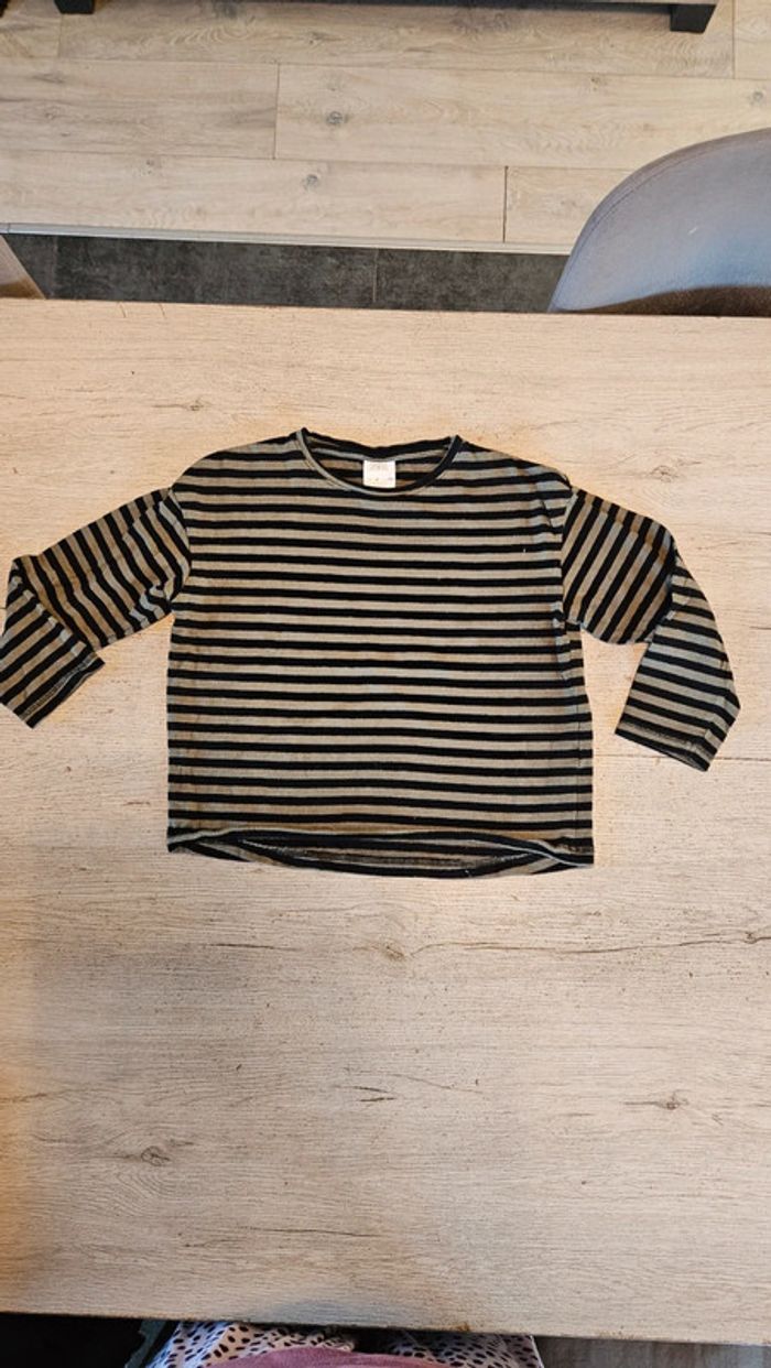 T shirt manches 3/4, noir et kaki, Zara, taille 8 ans - photo numéro 1