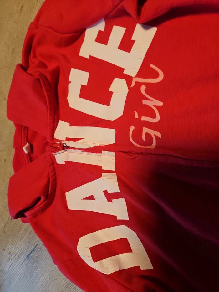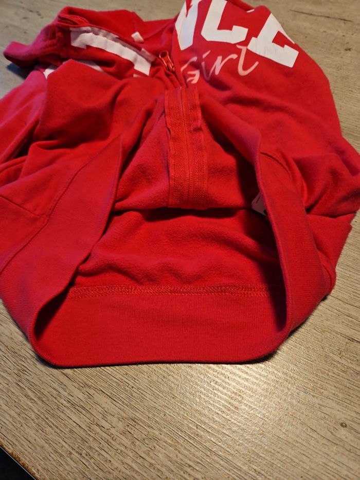 Joli gilet fushia légèrement polaire. Avec capuche et manches longues. Inscription blanche légèrement abîmée. Mis mais encore bien. Taille 13 à 14 ans #deborahtock_13ans #deborahtock_14ans