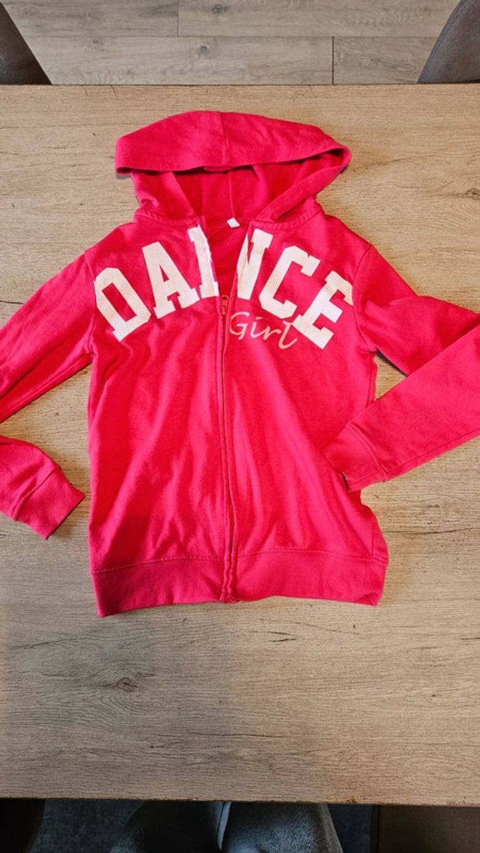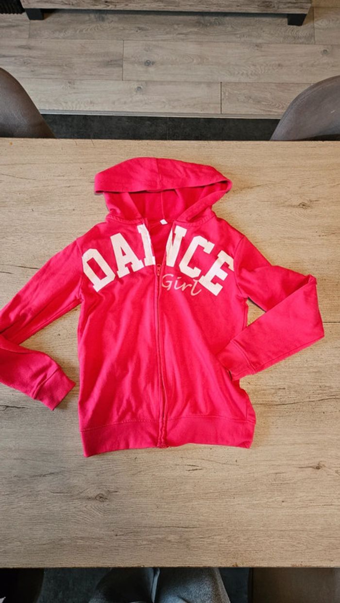 Gilet à capuche fushia, manches longues, fille, 13/14 ans, peu mis - photo numéro 1