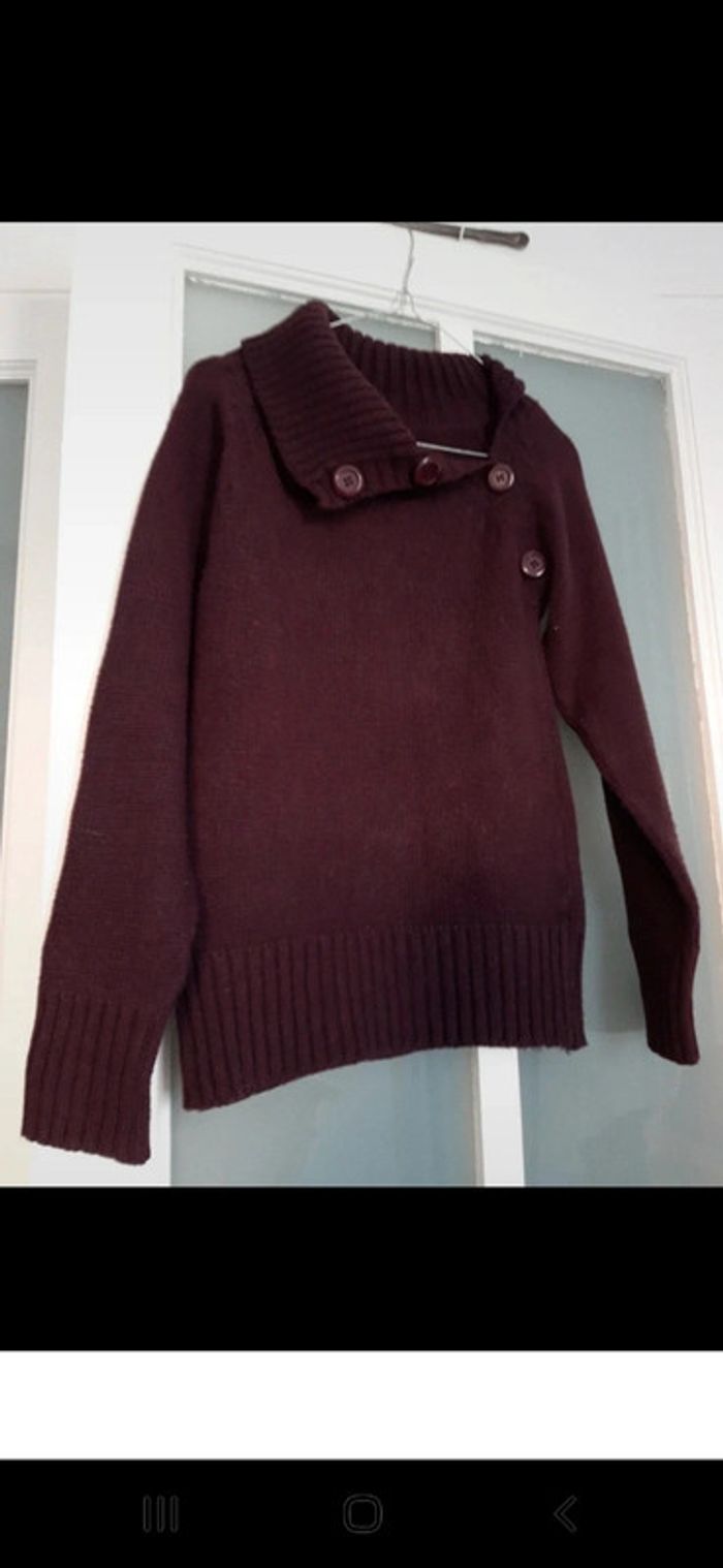 Pull bien chaud couleur prune Taille 38 col haut rabats Aisselles à aisselles 41 cm Longueur 60 cm