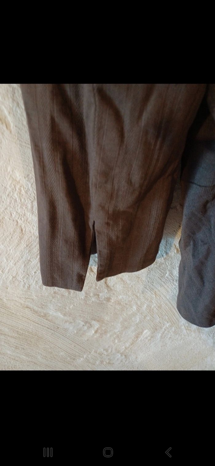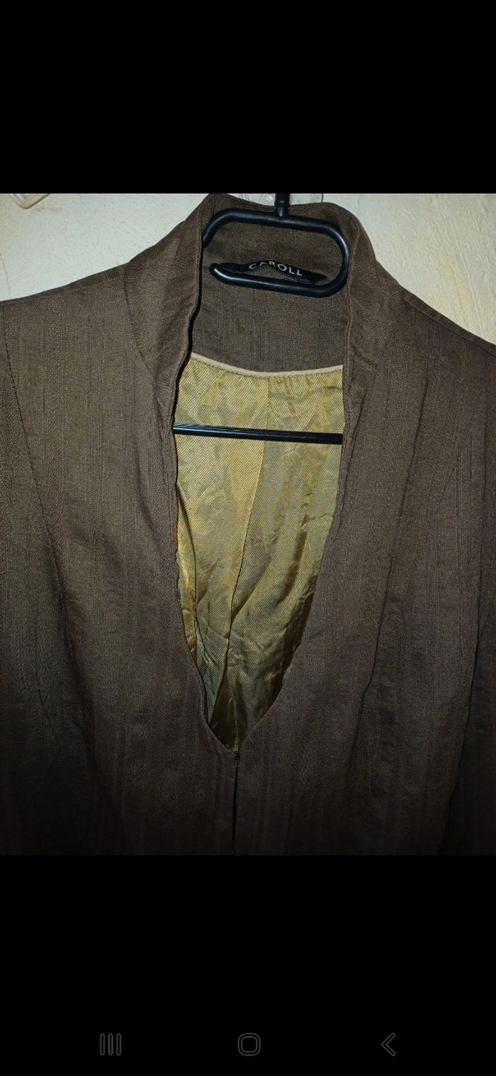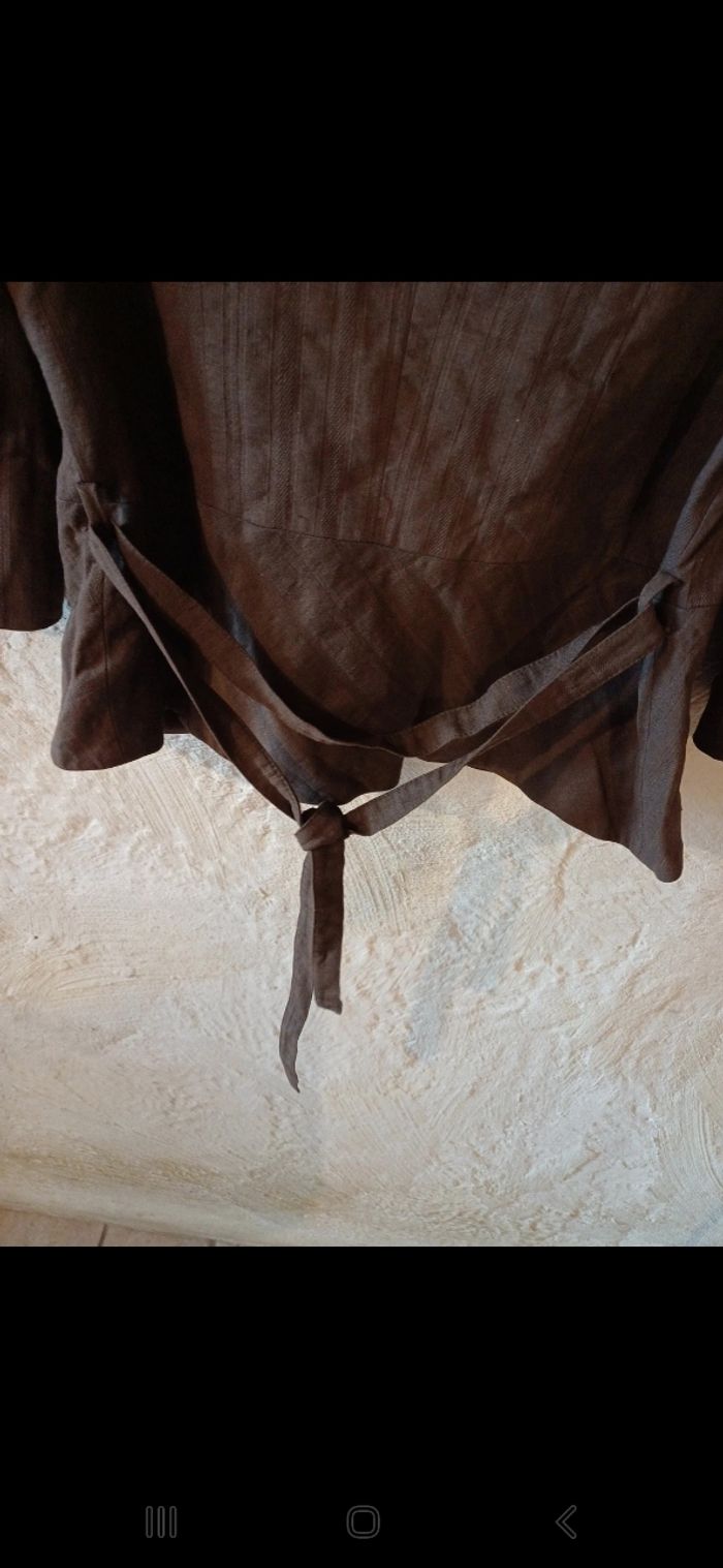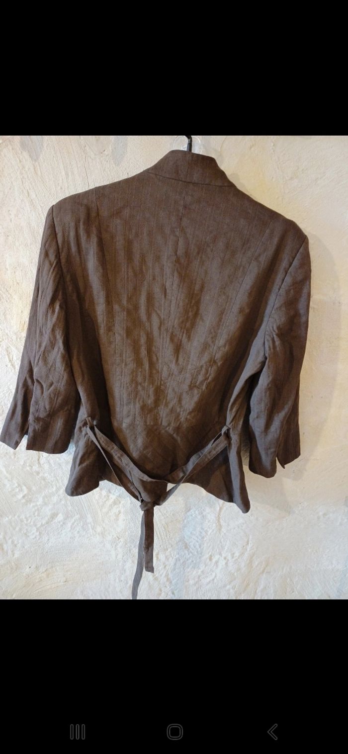 Jolie veste de tailleur avec 3 agrafes à l avant, lien à l arrière, manches 3/4. En parfait état. Avec petites épaulettes