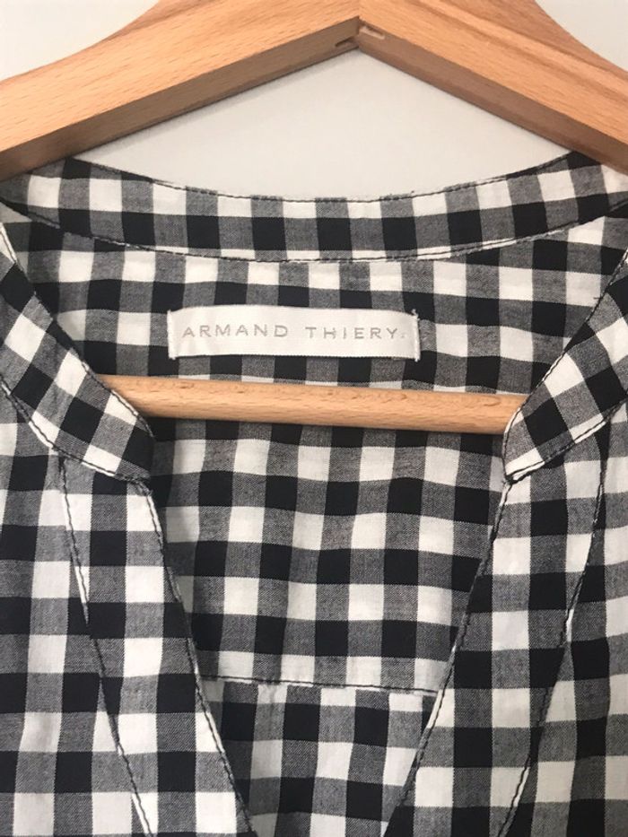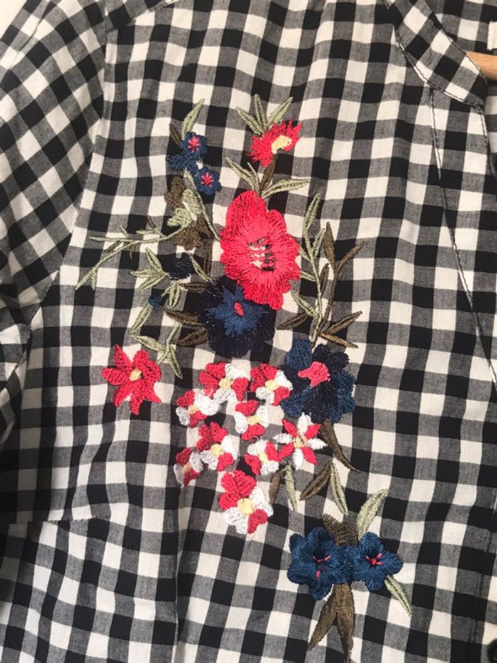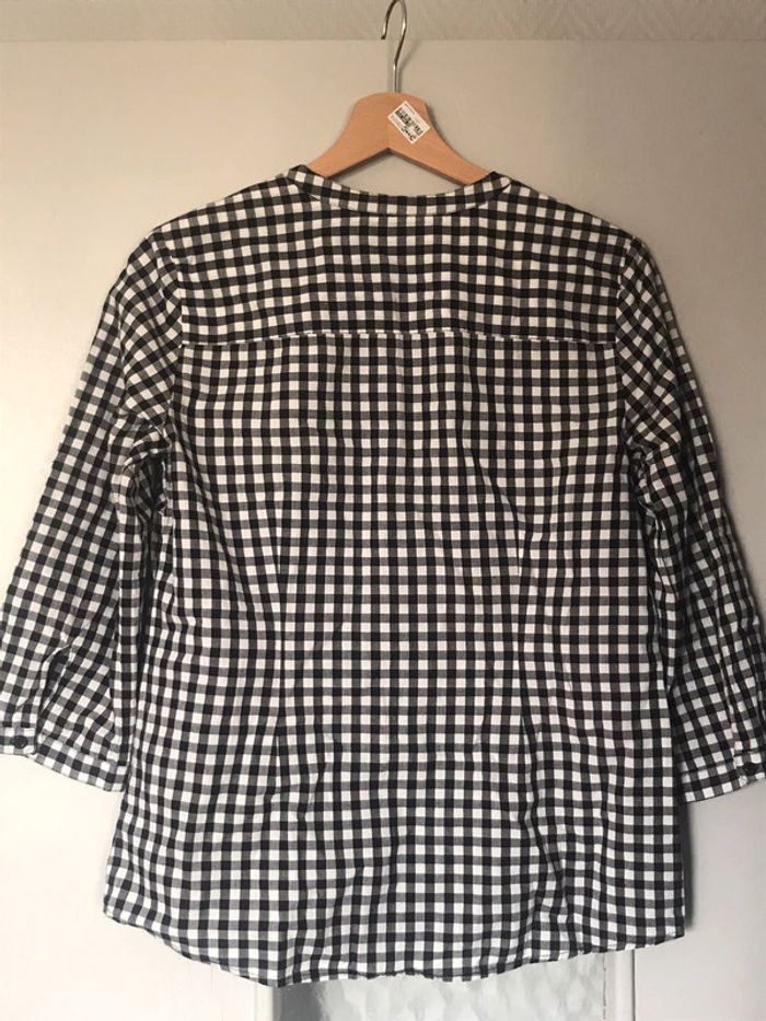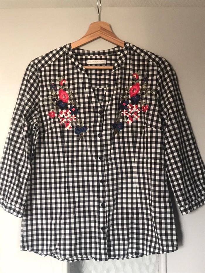 joli chemisier à carreaux noir et blanc et fleurs brodées . manches 3/4. taille 1