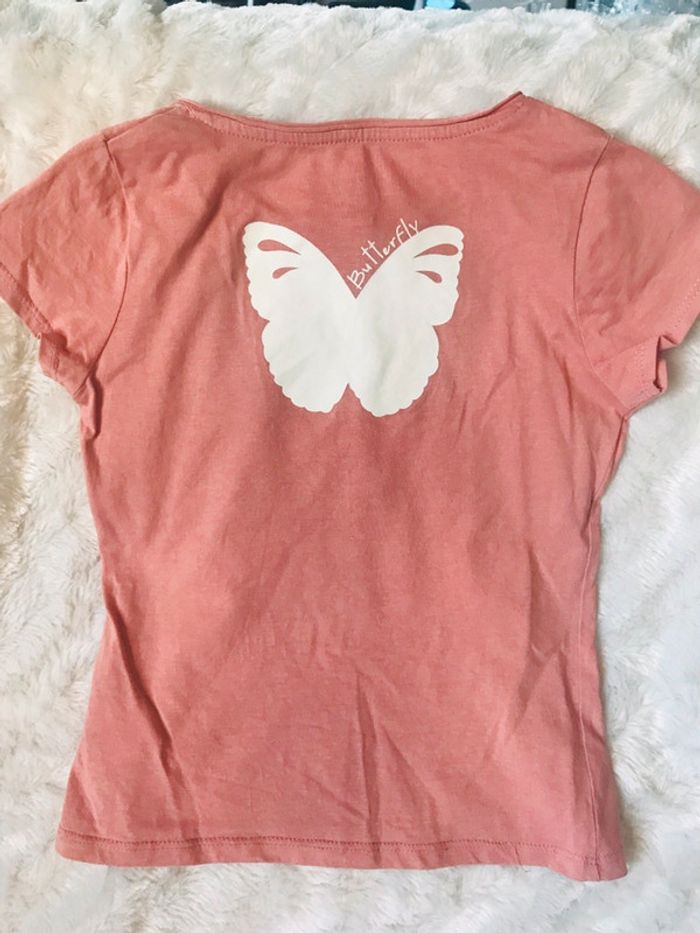 dos avec papillon. très bon état sauf petit trou du à l étiquette lors de l achat (photo 2). couleur vieux rose