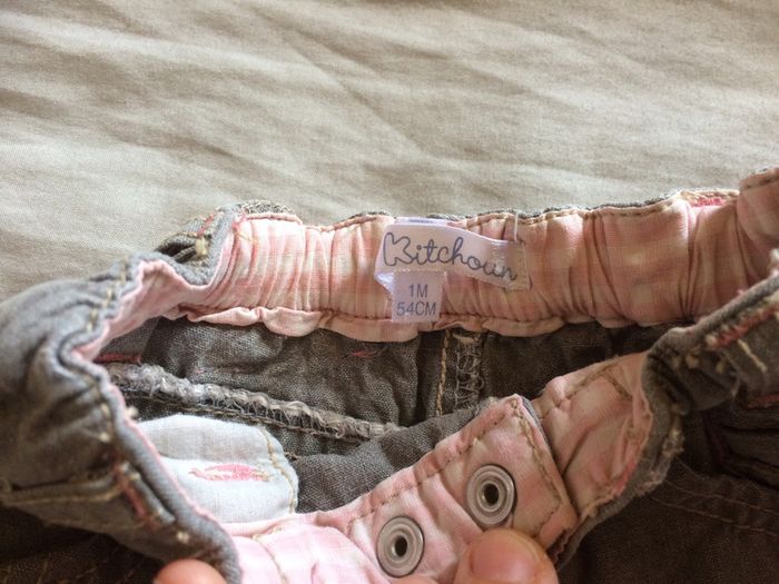 Jean gris clair léger 1 mois. Impeccable . Pressions entre les jambes pratique pour les couches à changer