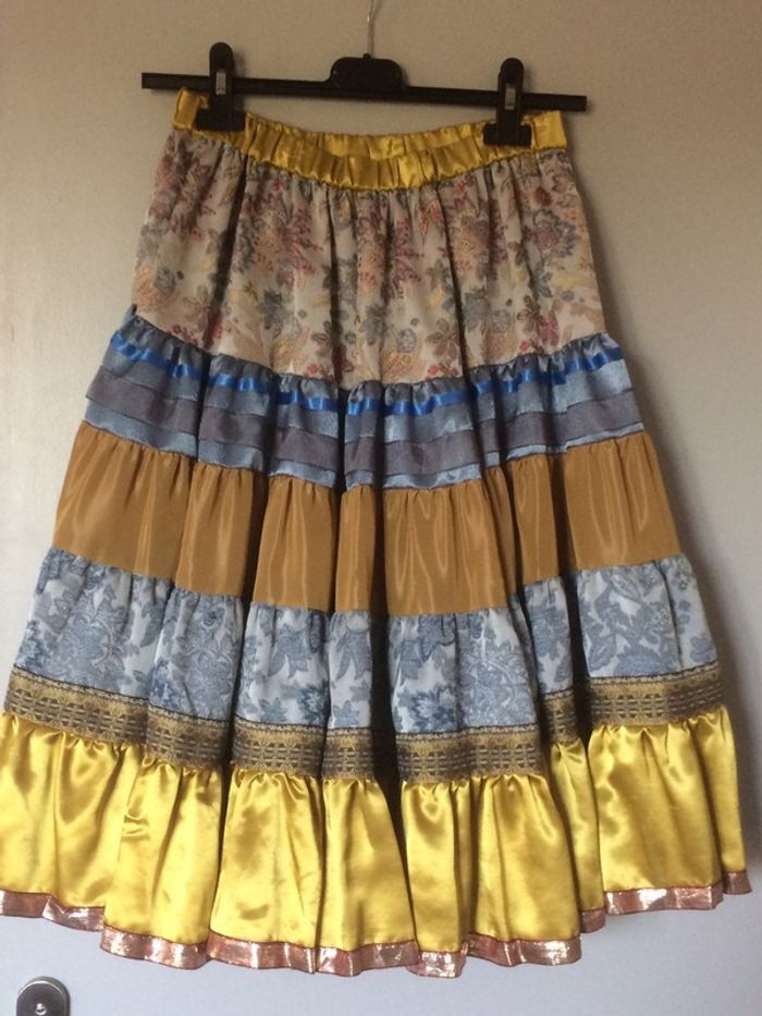 Jupe en soie et viscose artisanale. Longueur au niveau du genou