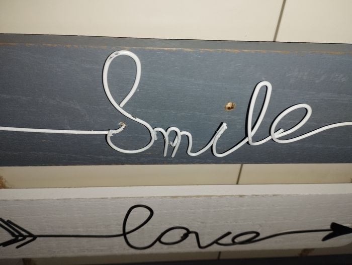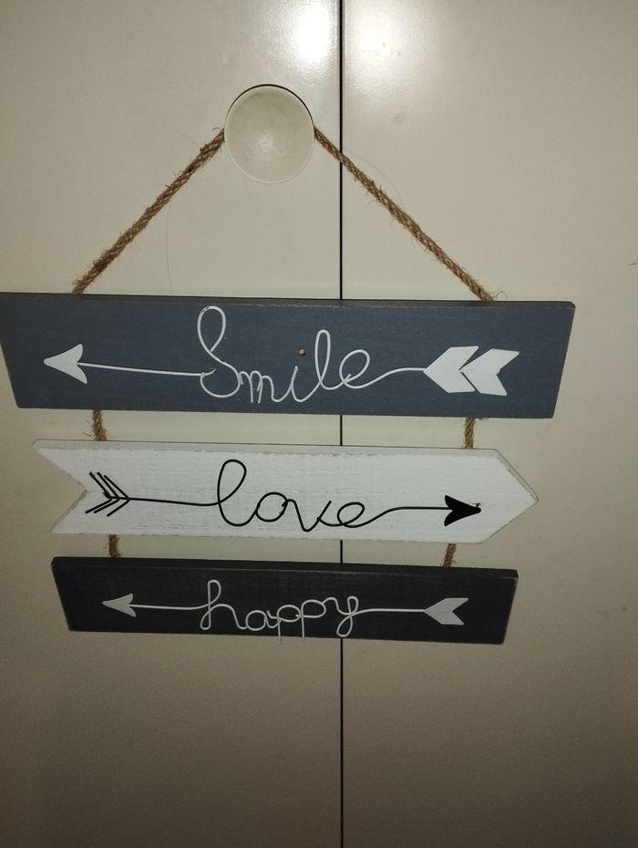 "Tableau " 29*35 environ ( sans compter attache ficelle) couleur de bois non uniforme d'origine, accroché au mur peu de temps Le point du i est décollé, fourni