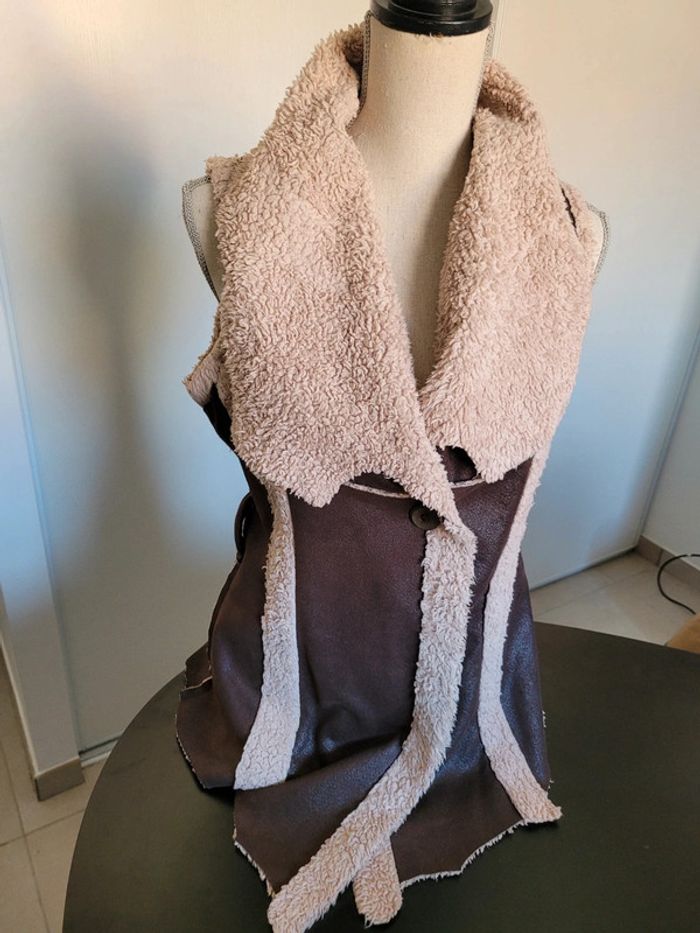 Très belle veste chaude et confortable sans manches marron et beige taille M. #jeannegomez_pulls #jeannegomez_manteaux