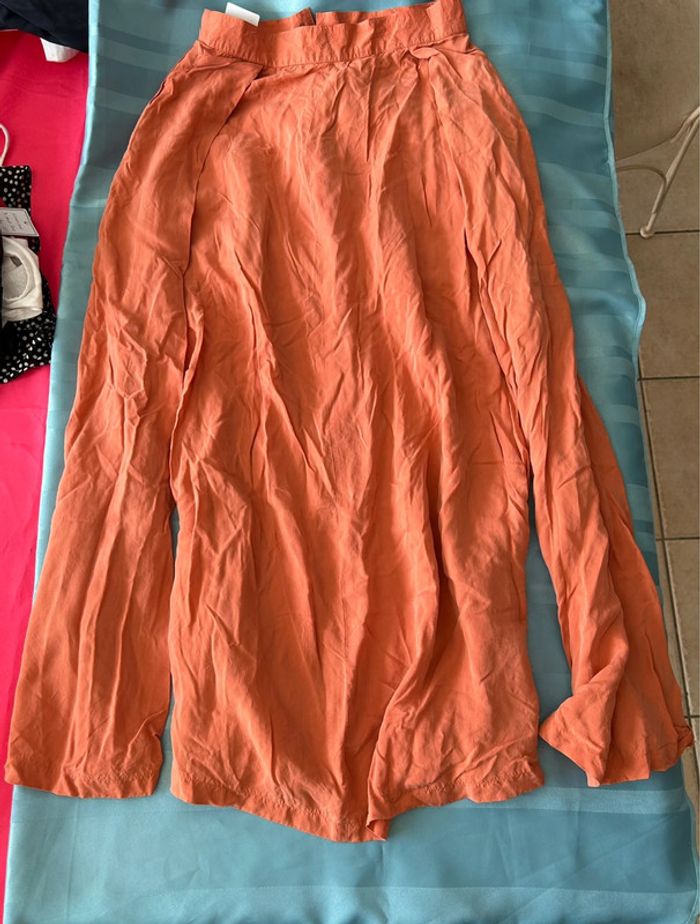 Jupe fendue Théorème 💯 % cupro, orange Jupe fendue 65% polyester, 35% viscose / doublure : 💯 % polyamide, grise/marron #lolie5femme38 #jupe38