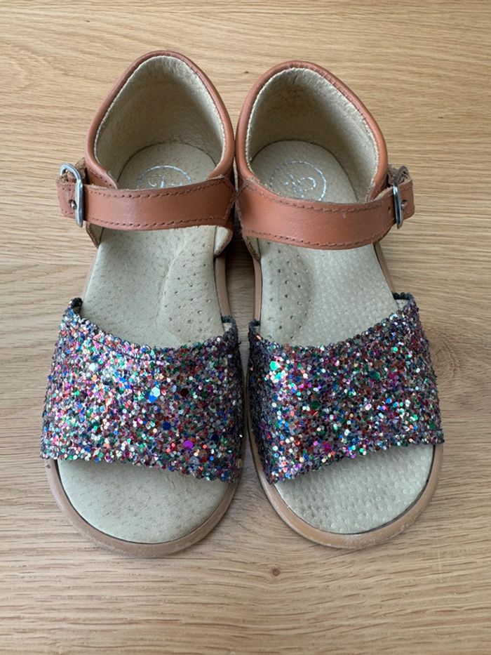Sandales cuir marron et avant en paillettes - Pointure 24 - photo numéro 1