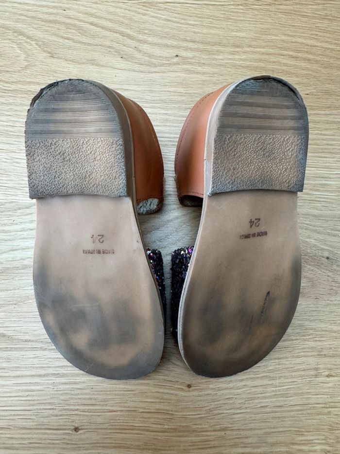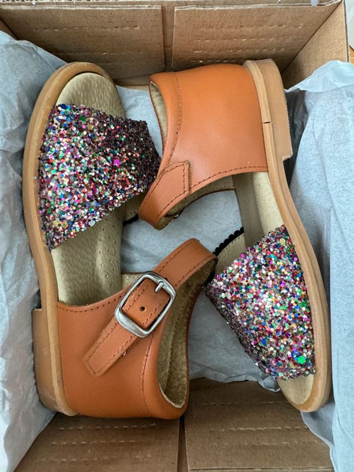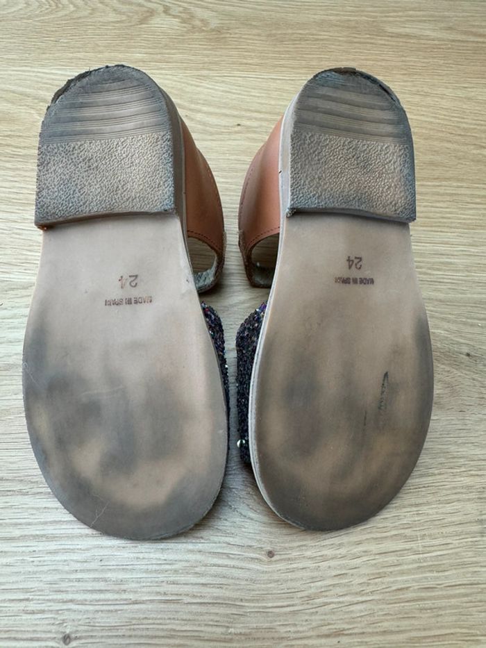 Sandales cuir marron et avant en paillettes - Pointure 24 - photo numéro 9