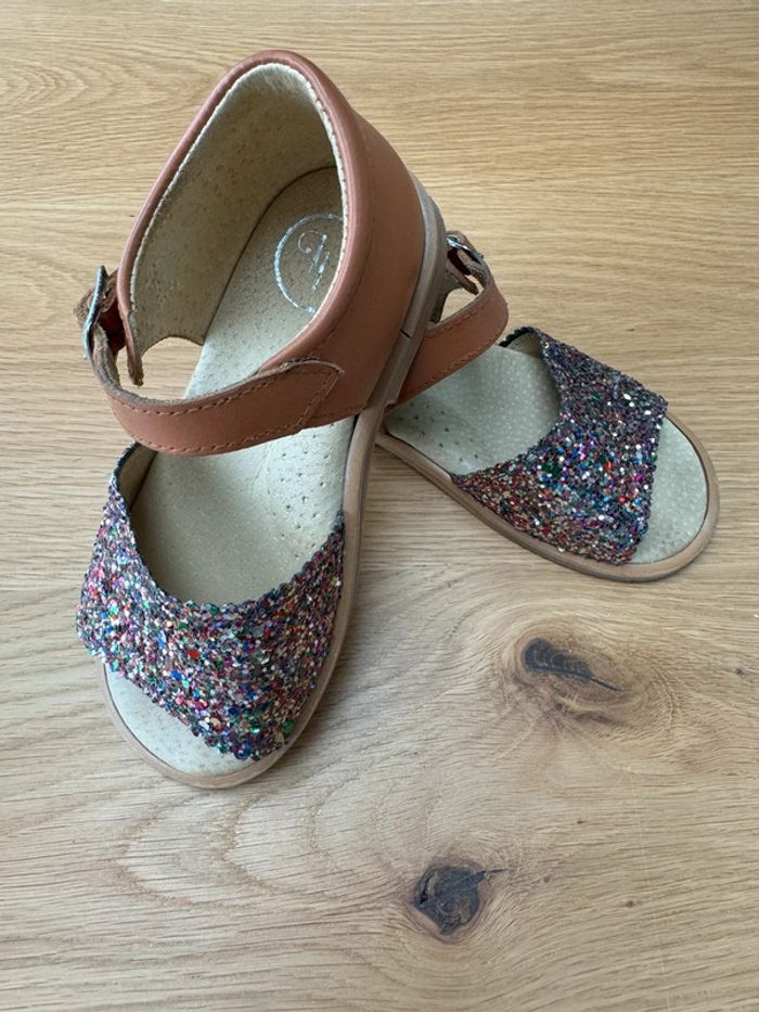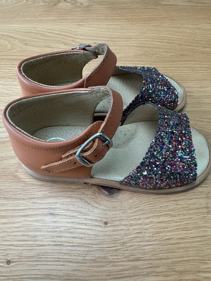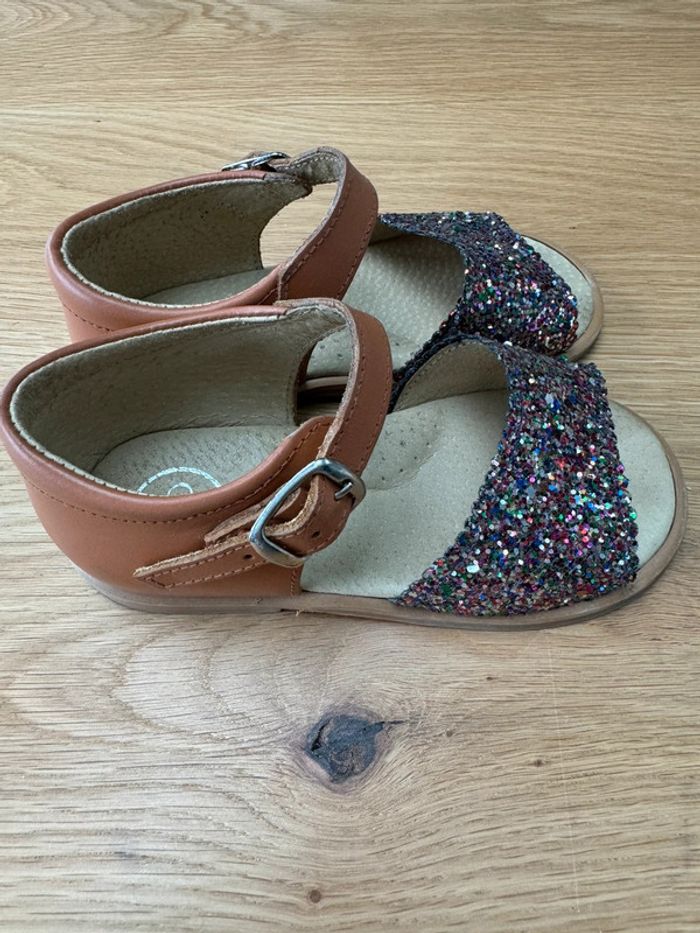 Sandales cuir marron et avant en paillettes - Pointure 24 - photo numéro 2