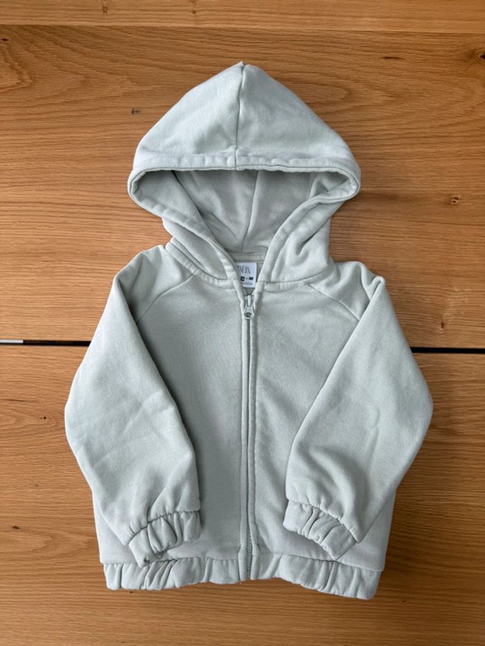 Veste zippée à capuche vert pâle - Taille 2/3 Ans (92cm)