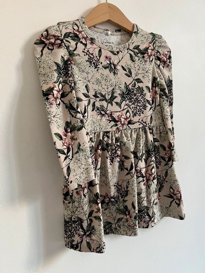 Robe ML fond beige motifs de fleurs et feuilles de marque Name It. La robe est dispose d’élasthane ce qui la rend très agréable à porter. Dessus des manches légèrement bouffant et elle est resserrée à la taille. C’est indiqué 1an 1/2 mais c’est du 86cm donc correspond bien à du 24 Mois. Le petit + elle ne se froisse pas 🤩 Elle va super bien avec le gilet sans manche blanc en vente dans mon dressing 😉. Elle est en excellent état et est composé de coton bio. 🛍️ N'hésitez pas à jeter un œil à mon dressing et composer votre lot j'ai d'autres articles qui vous attendent en fille 24 mois/2 ans 🎉 #bebefille24mois_lapetitemarie