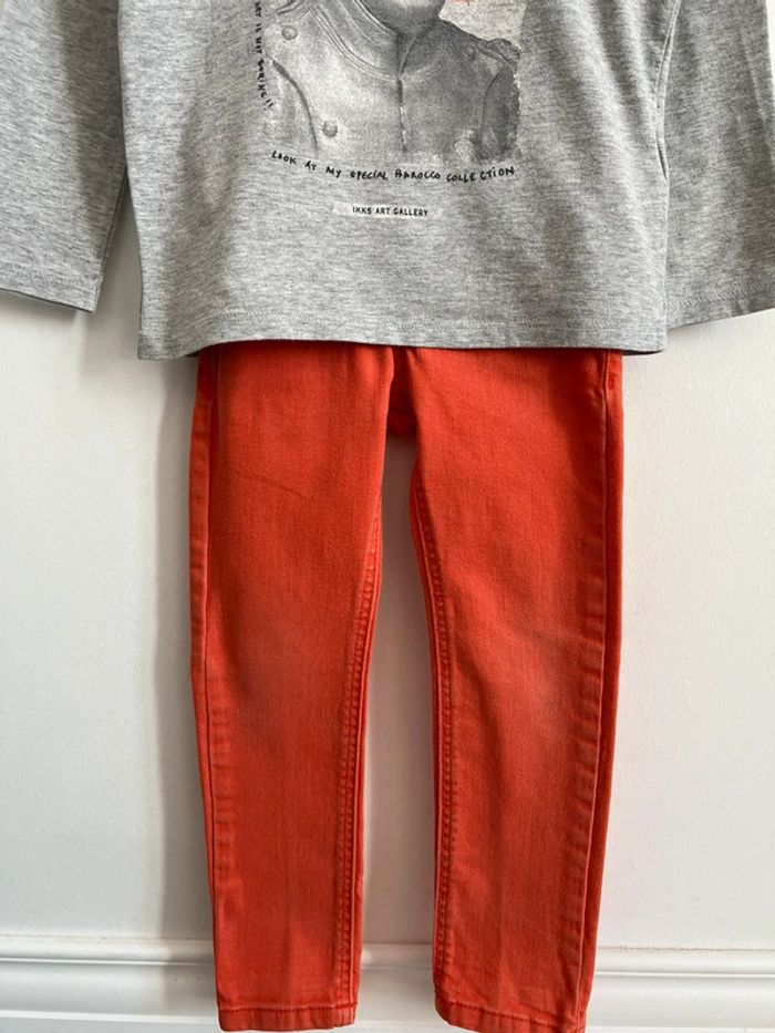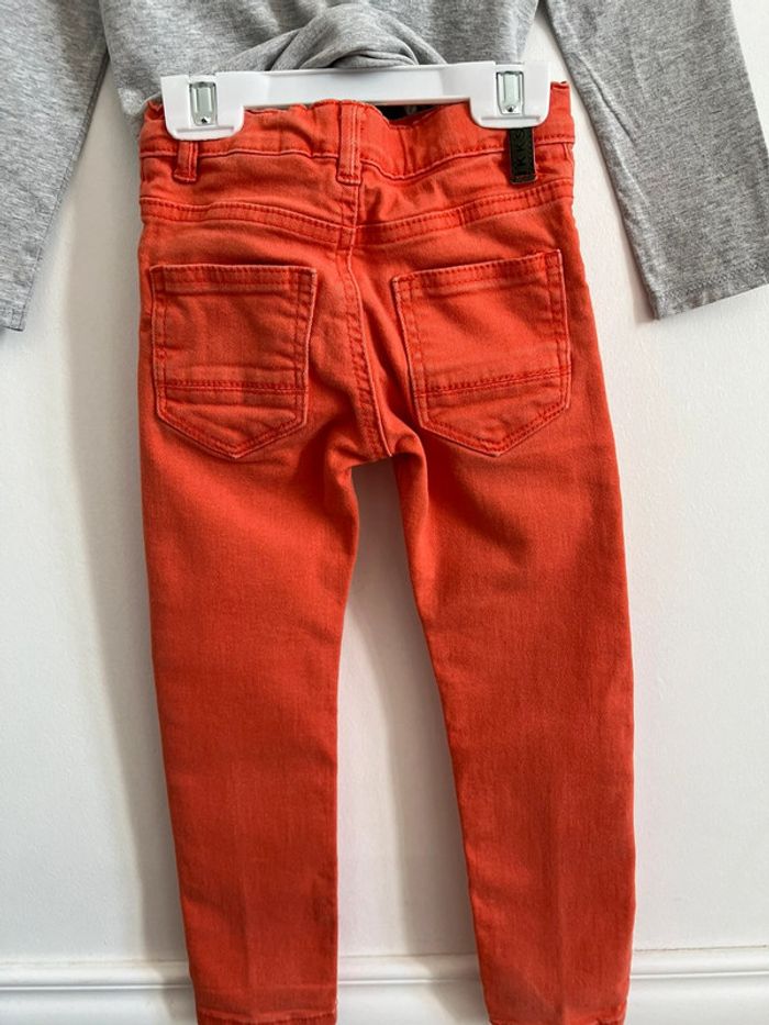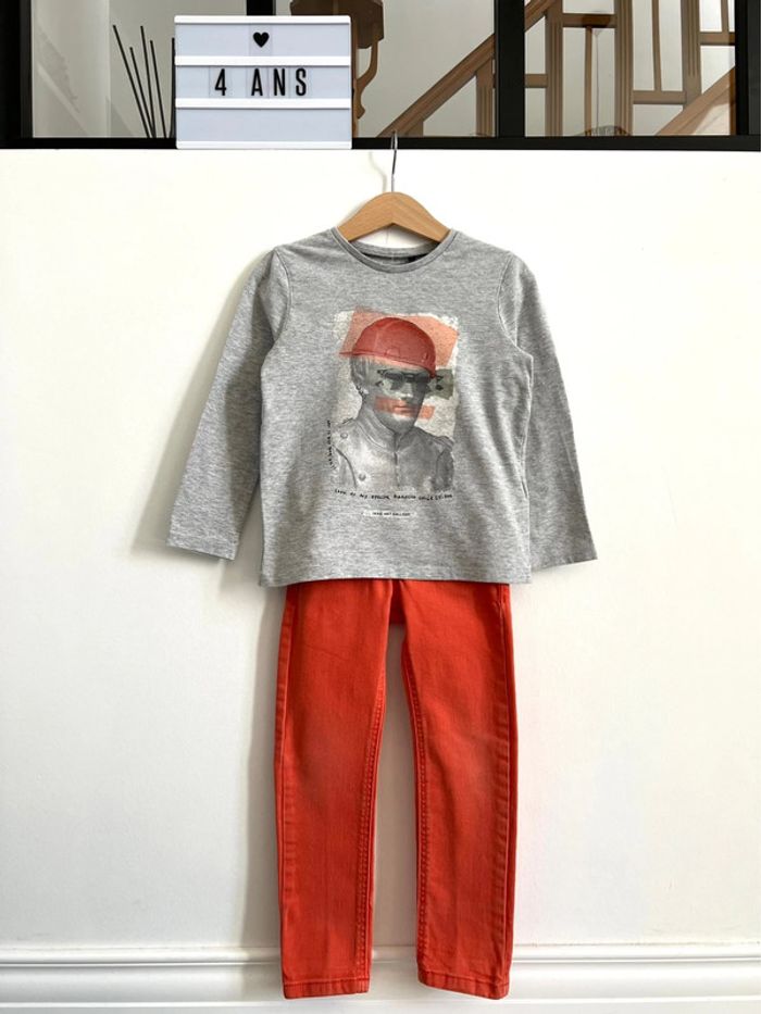 Tenue deux pièces haut ML gris et jeans slim orange - Taille 4 Ans - photo numéro 1