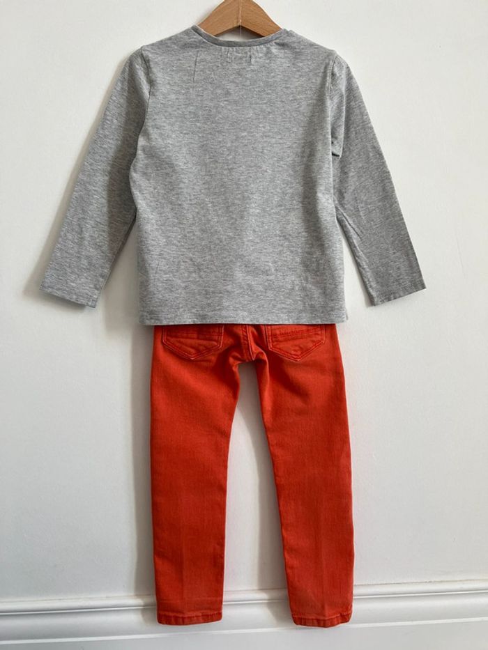 Tenue deux pièces haut ML gris et jeans slim orange - Taille 4 Ans - photo numéro 2