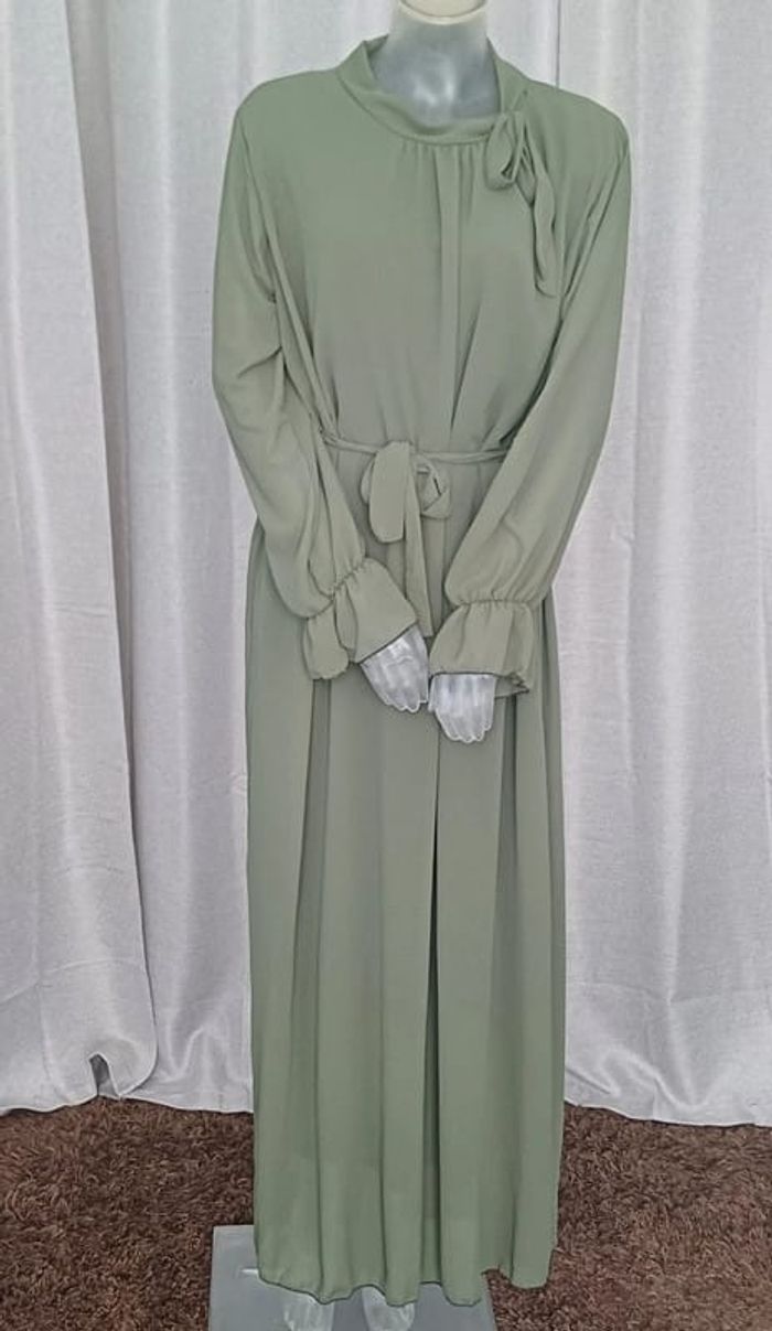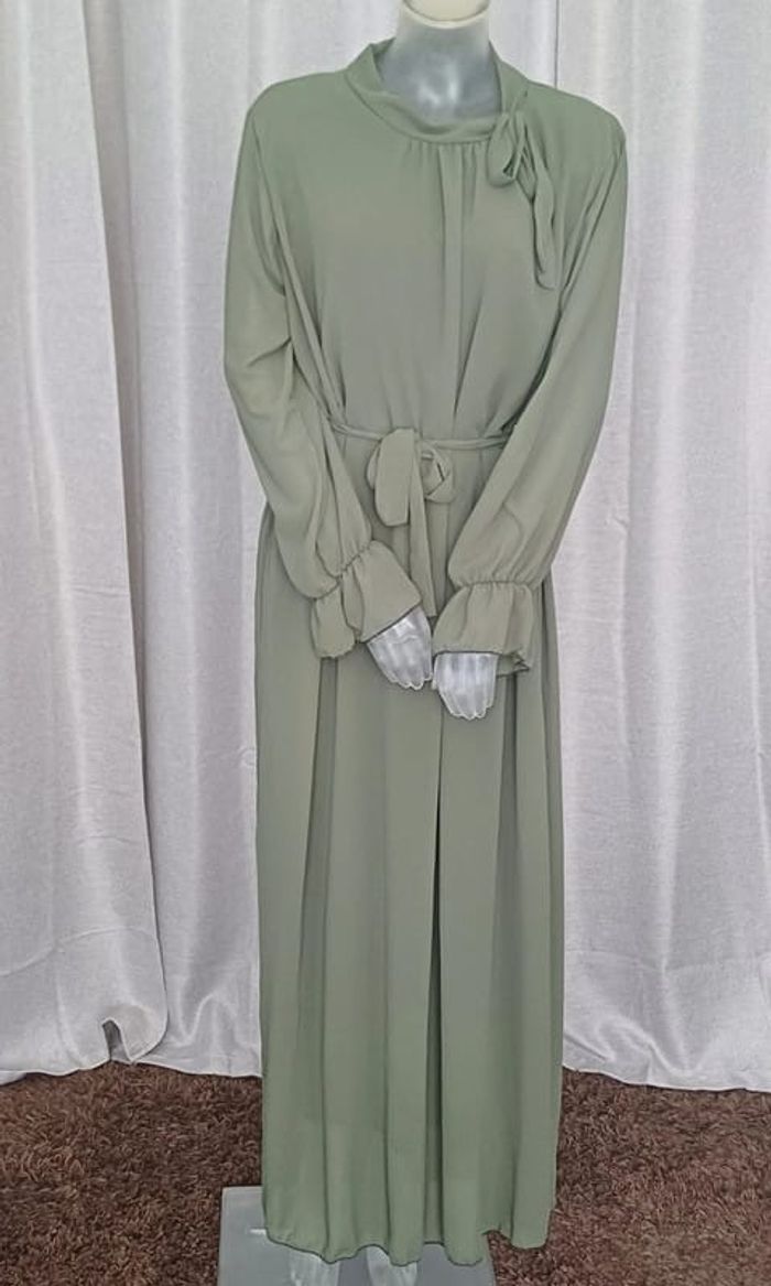 Robe chic et élégante en voilage kaki - photo numéro 1